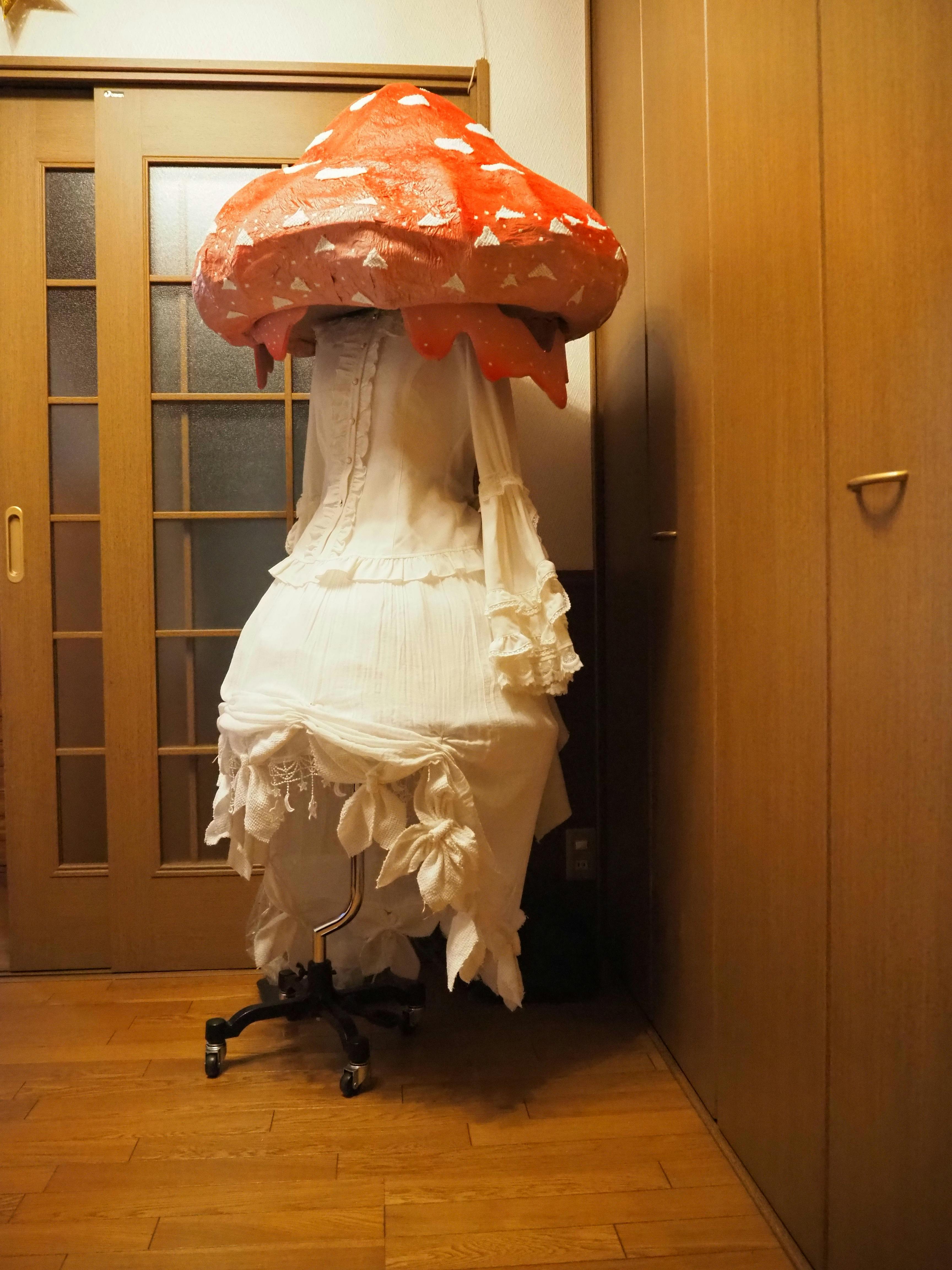 キノコのアイデアは海外のアーティストの方で、妖精や悪魔が参加するパーティを主催している方がいて、キノコの妖精の衣装も手掛けており、その仲間に入りたい気持ちで今回のキノココスプレをしました!