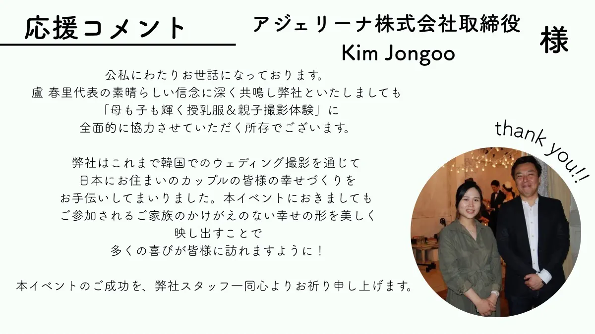 イベントでの親子撮影では韓国ウエディングで人気のajerena wedding 様のご協力により親子撮影を実施します。