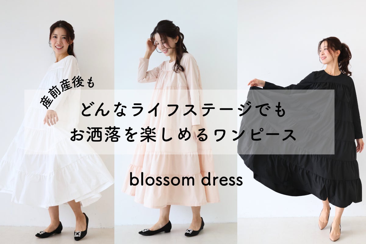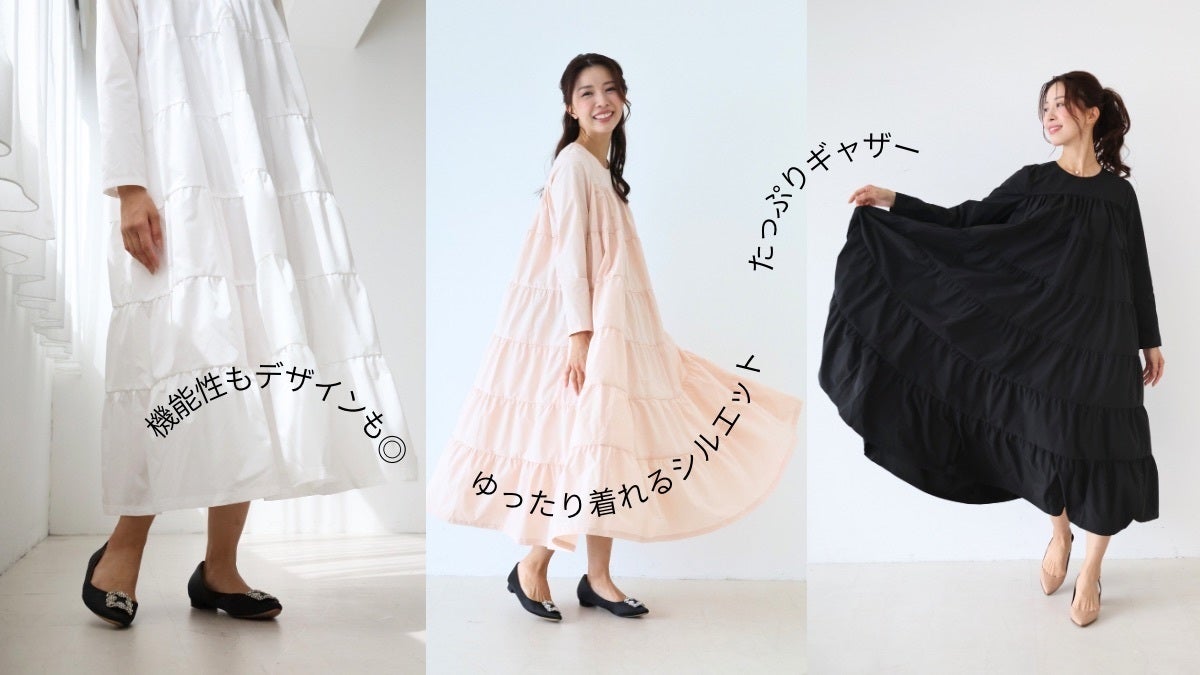 新作ワンピースは、産前から産後まで長くご愛用いただけるよう、着心地とデザインの両方にこだわって仕上げました。