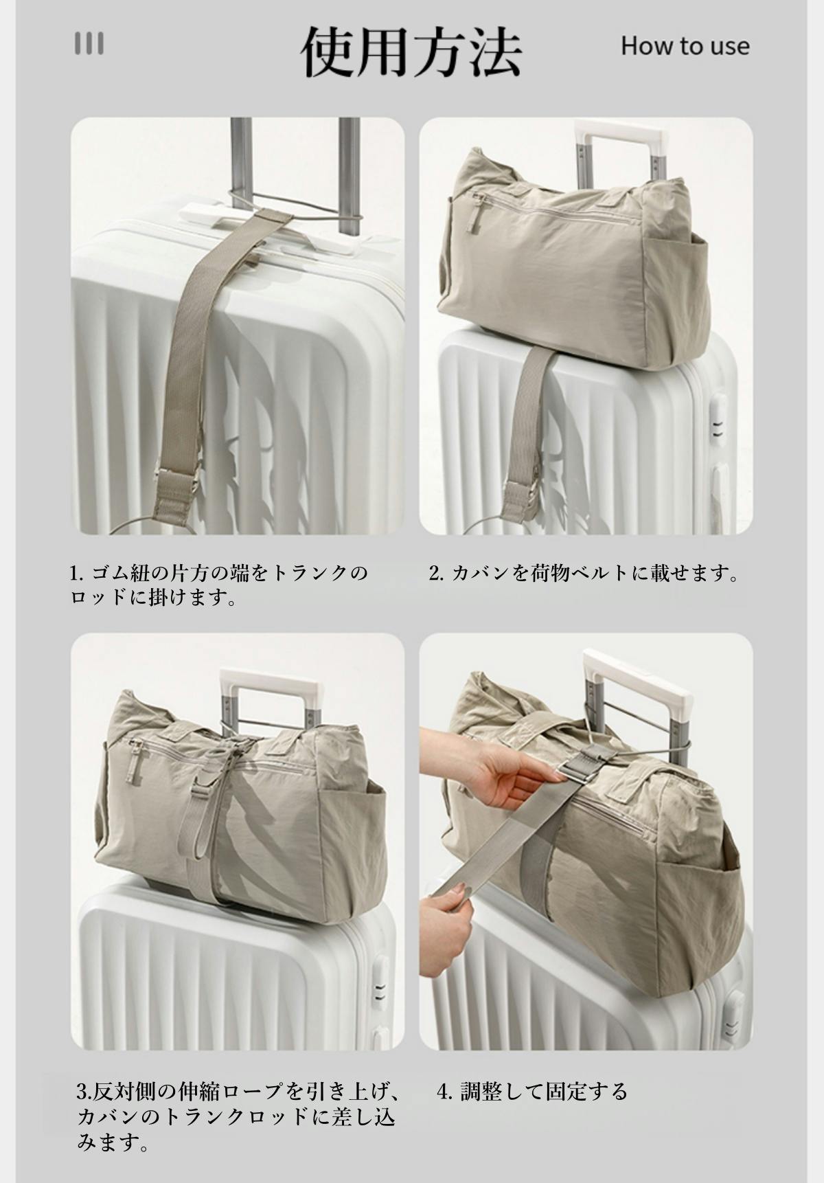 スーツケースに荷物やコート、飲み物などを固定し、持ち運びを楽にできます。