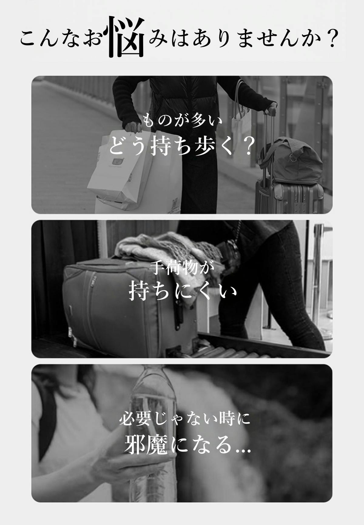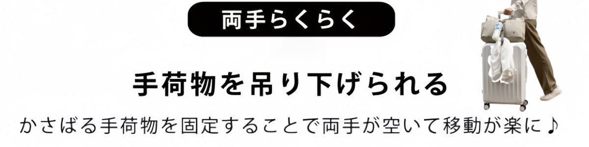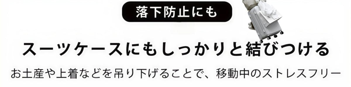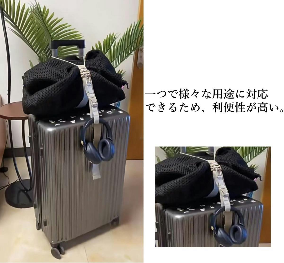 旅行時に複数のスーツケースを連結したり、通勤時に飲み物などを吊り下げたりと、様々なシーンで活用できます。