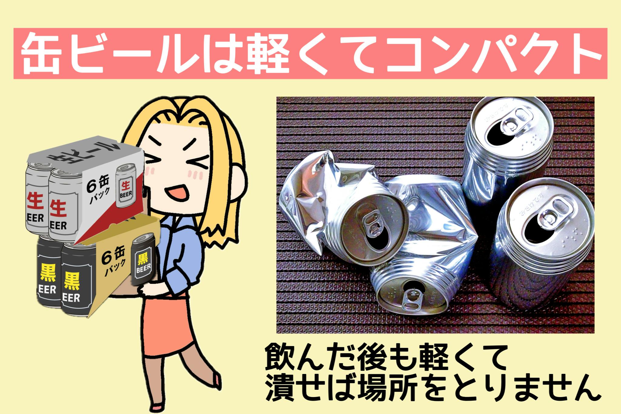 また、飲み終わったあとのゴミも缶は軽く、潰してコンパクトにできるのに対し、