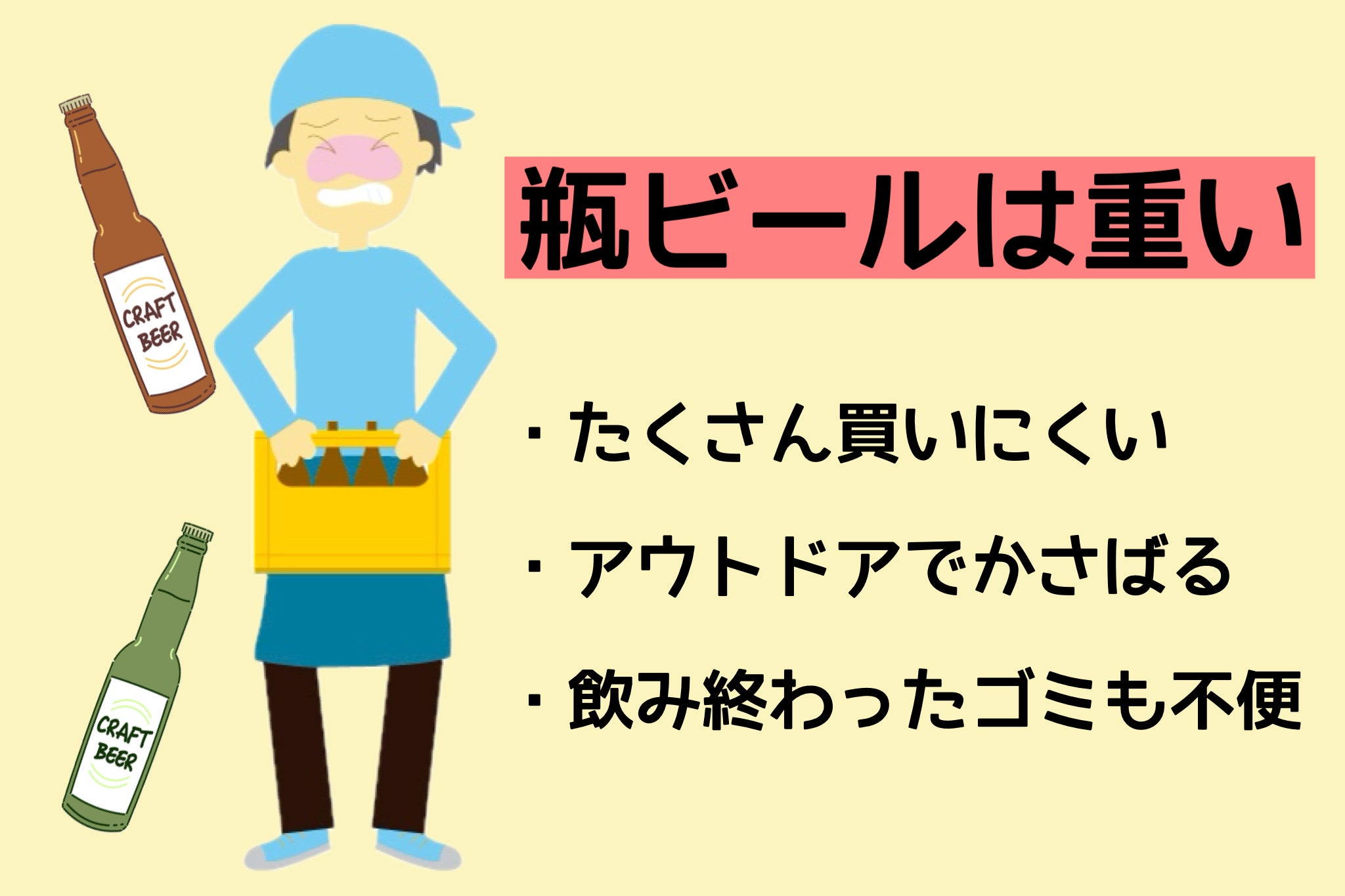2.瓶ビールは重く、かさばって持ち運ぶには大変