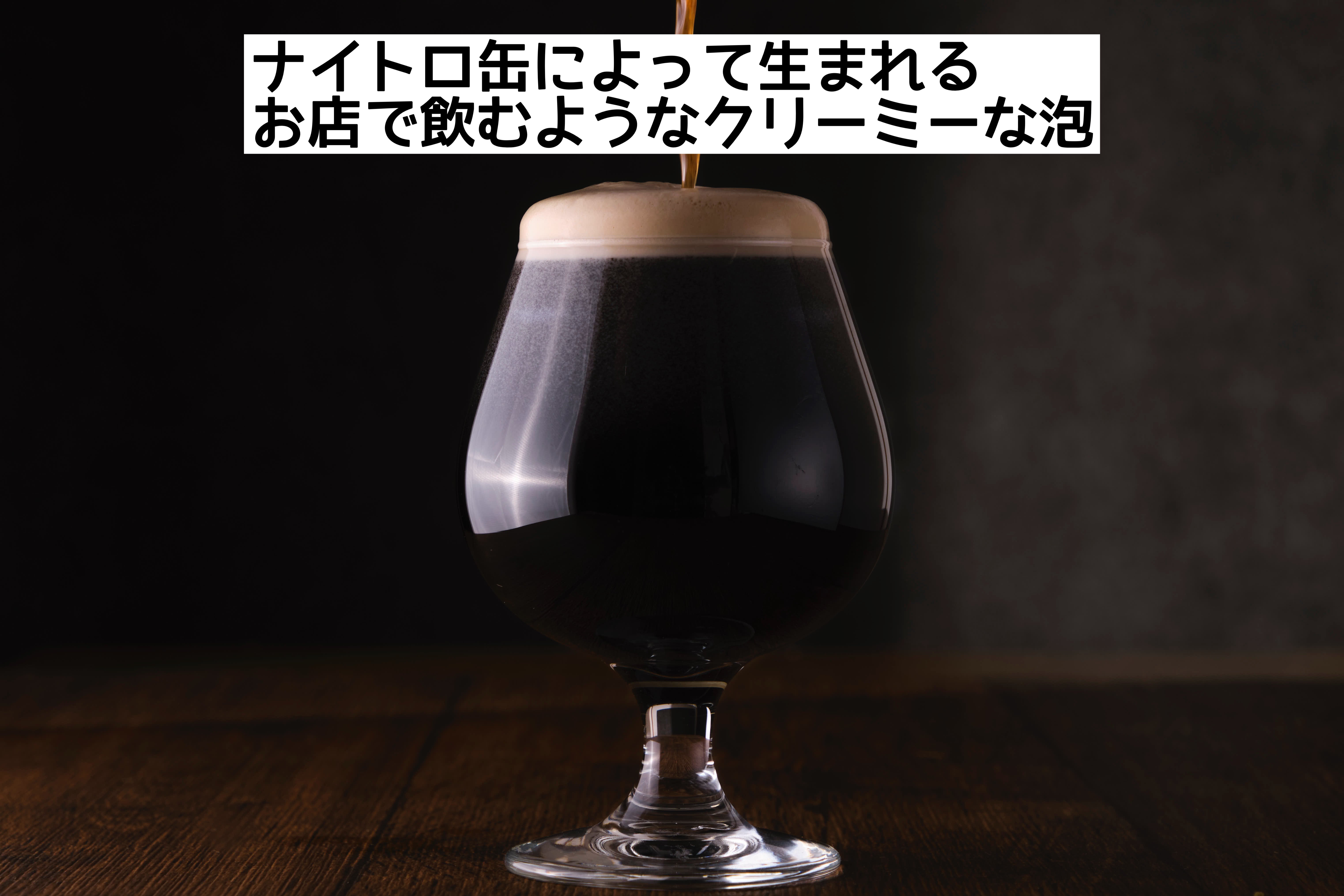 ナイトロ缶とは缶ビールの中に、一般的なCO2ガスではなく、窒素(ナイトロジェン)を加えることで、お店のドラフトビールのようなクリーミーな泡と滑らかな口当たりを楽しめる缶ビールです。