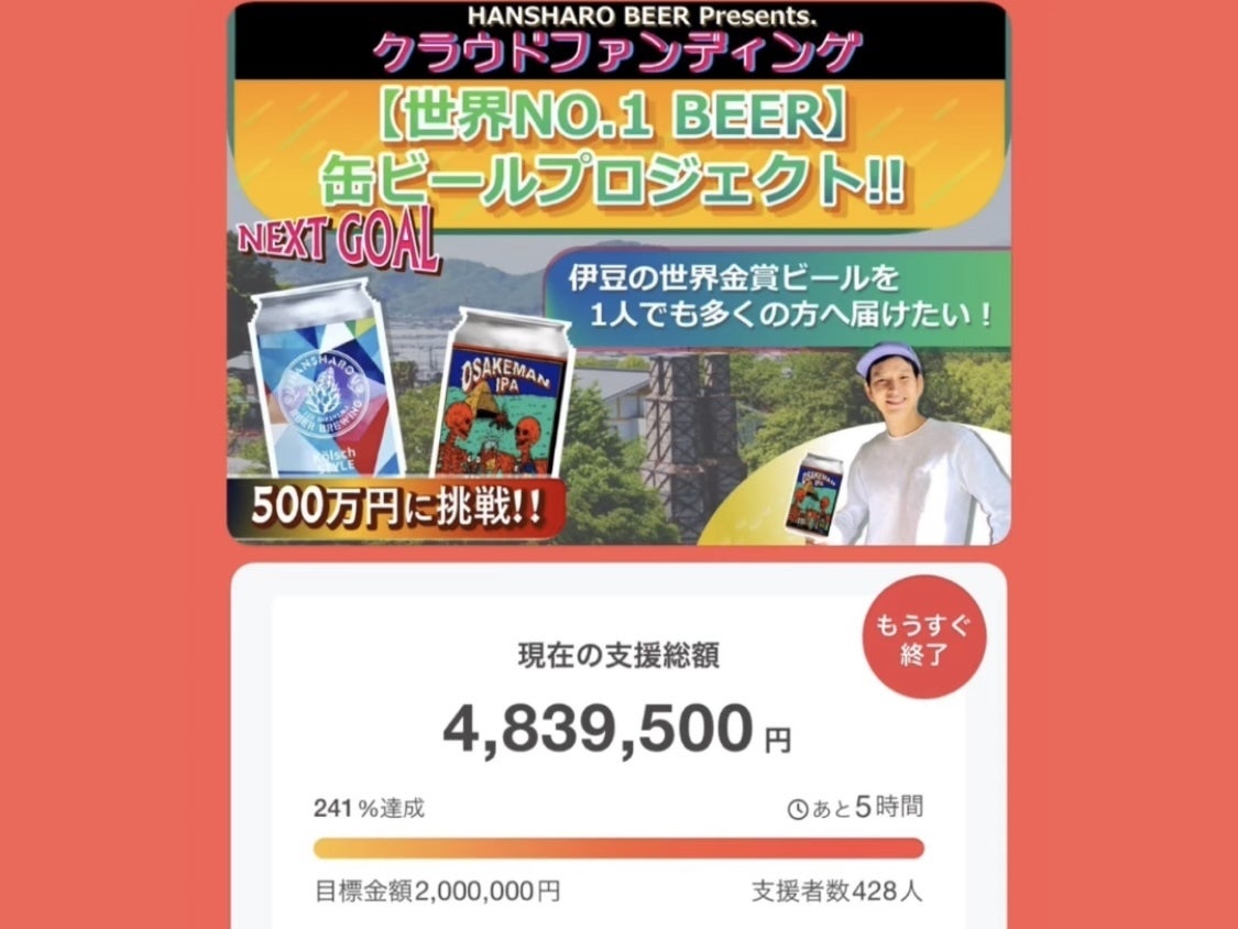 ここまで来たら、支援総額500万円を目指したい!!缶ビールプロジェクト成功に向けて最後まで全力で挑みます!!