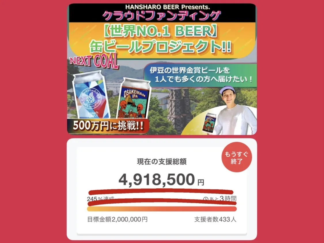 ここまで来たら、支援総額500万円を目指しその先の世界を眺めたい!!缶ビールプロジェクト成功に向けて最後まで全力で挑みます!!