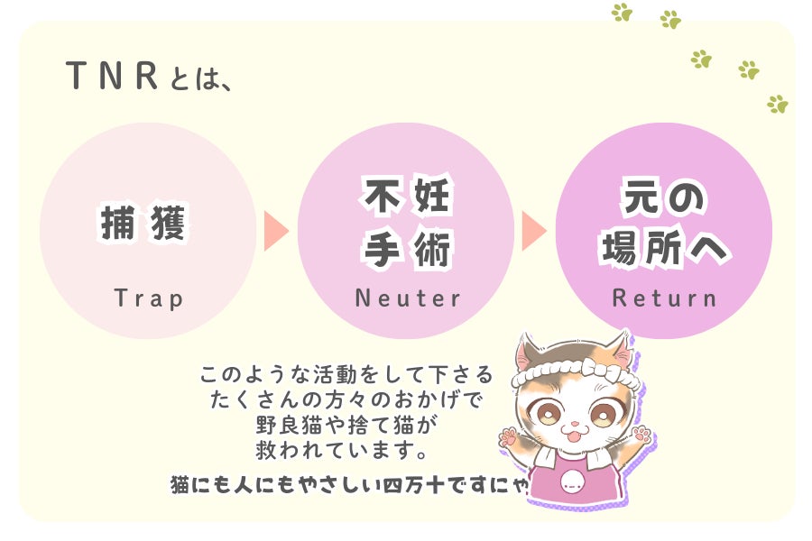 ※TNR:Trap(捕獲)→Neuter(不妊手術)→Return(元の場所へ戻す)という地域猫活動の一環