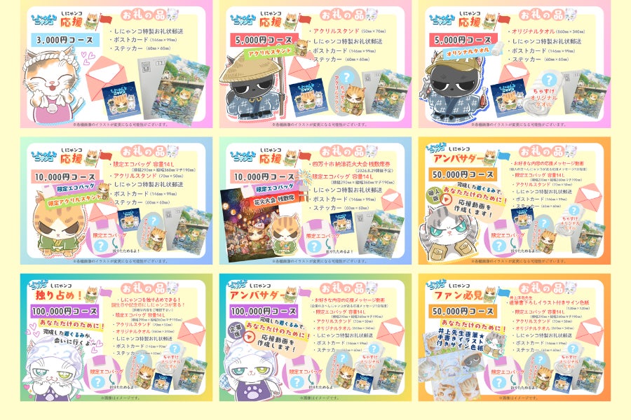 2026/04/23 13:132026年6月20日は、しにゃンコが誕生して丸1年となる日です!その際には各報道の方も来て下さり、テレビや新聞に取り上げていただいたおかげもあってたくさんの方へ「しにゃんとニャンコ」の存在を届けることが出来ました!それから、各イベントへの出店からはじまり、四万十市のイベントと花火大会のキャラクターの起用、全国含めた名前募集、地域情報誌「はたも~ら」への連載。そして、クラウドファンディングは、皆様のご支援のおかげで無事目標額を達成することが出来ました!!!しにゃンコが生まれて1年も経たない間にたくさんのことがあり、そのたびに皆様のお力添えをいただき、今のしにゃンコがあります。その感謝の気持ちを込めて、1周年記念の場をもうけさせていただくこととなりましたので報告させていただきます!!ありがたいことに、フジグラン四万十店様で、また特設ブースの設置の許可をいただきましたので、そちらで1周年記念バッチと、しにゃンコそれぞれ5匹の紹介名刺を配布予定となっております。また詳細に関しましては、しにゃンコのSNSにて詳細が決まり次第情報を更新してまいりますので、今しばらくお待ちくださいませ!クラウドファンディングのリターンの作製につきましても、どんどんと進んでおりますので、今後の投稿を乞うご期待下さい!しにゃンコを引き続きよろしくお願いいたします。 もっと見る