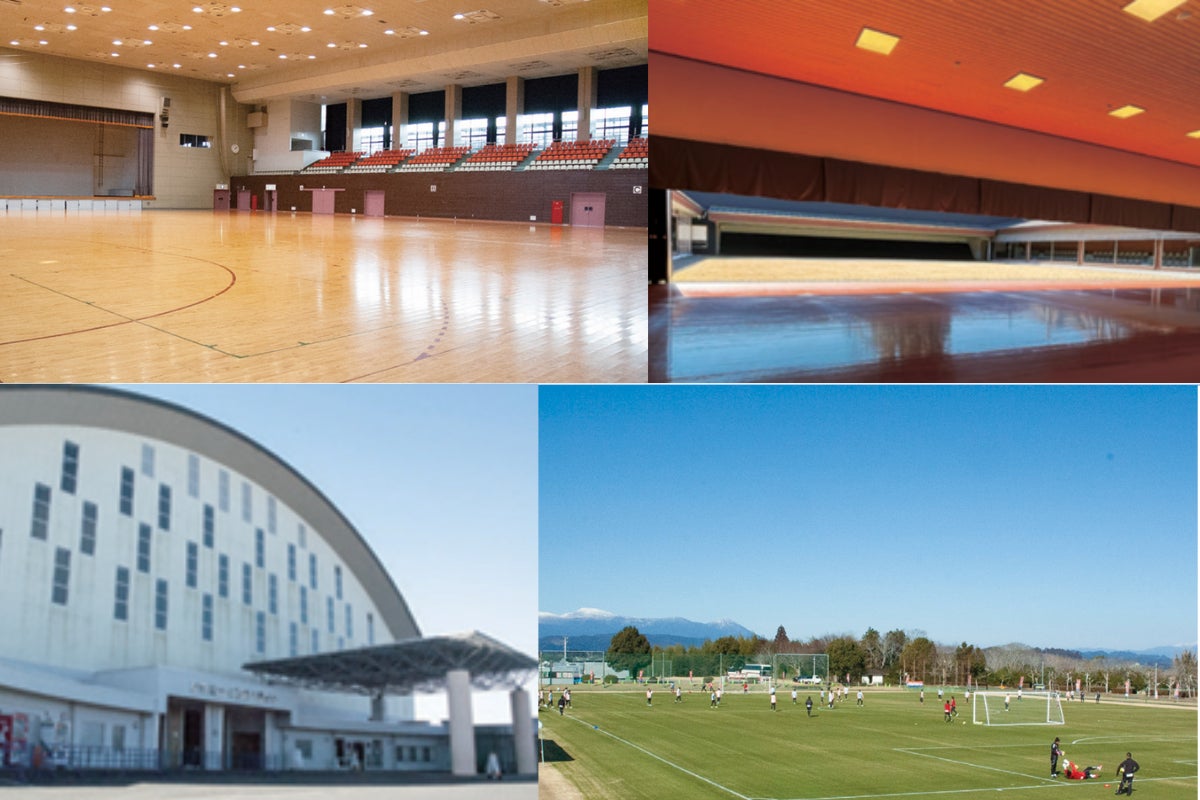サッカーコート2面・テニスコート4面・野球場・屋内競技場(フットサルコート2面)・体育館(バレーコート3面・バドミントンコート8面)・弓道場
