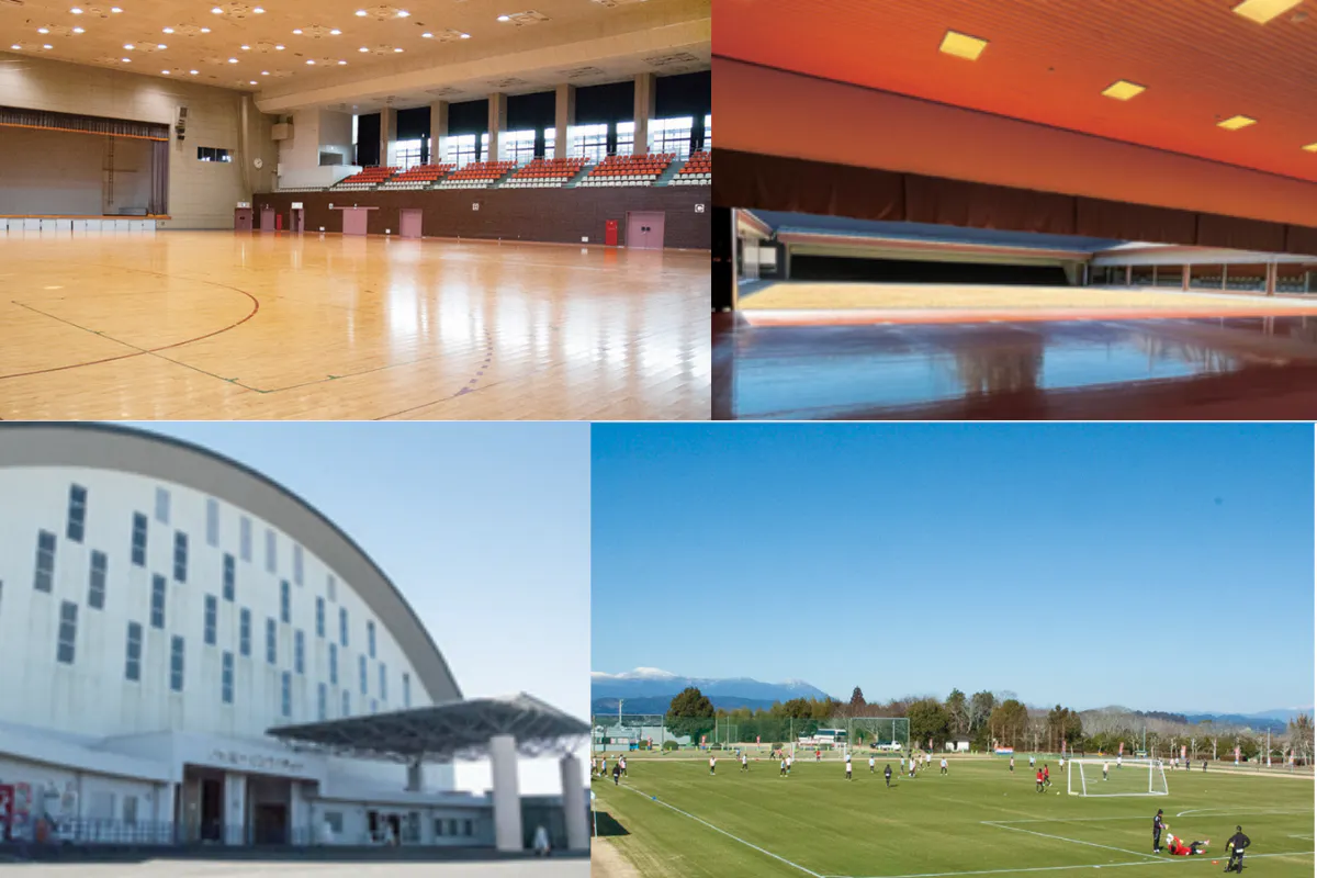 サッカーコート2面・テニスコート4面・野球場・屋内競技場(フットサルコート2面)・体育館(バレーコート3面・バドミントンコート8面)・弓道場
