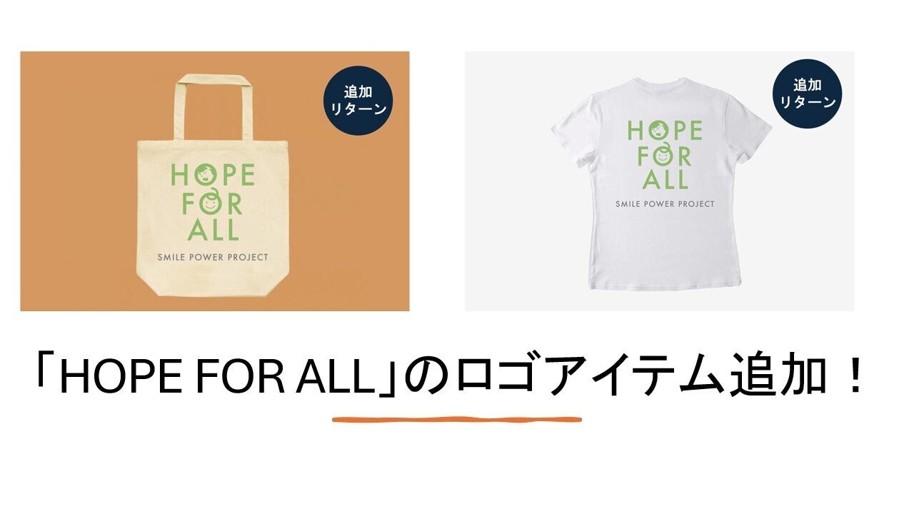リクエストにお応えして、ご支援いただいた方へのリターン(返礼品)に、今回の写真展のタイトル「HOPE FOR ALL」のロゴが入った商品が追加されました!トートバッグとTシャツに「HOPE FOR ALL」のロゴがシンプルにデザインされています。堀口マモルが求める地球への愛、赤ちゃんへのリスペクトが表現されています。【トートバッグ】・サイズ:高さ40cm、幅48cm、奥行き15cm(取手のひも部分除く)・内容量:20L【Tシャツ】・デザインは背中に入っています・希望するサイズを選択してください(S・M・L・LL)※どちらも画像はイメージです