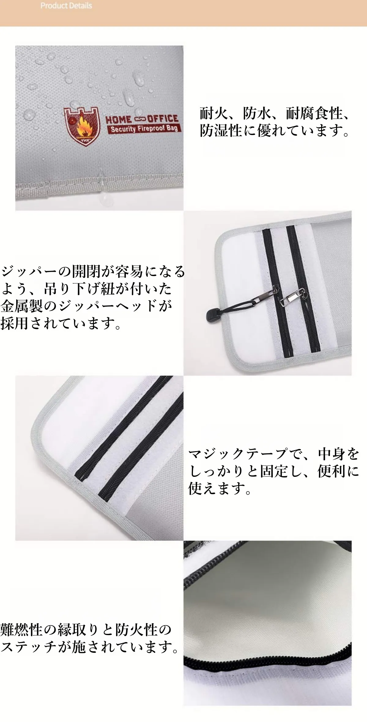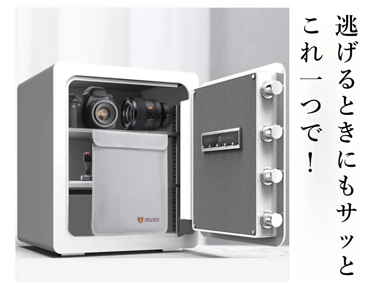 そのために、表面素材の熱の強さと防水機能も兼ね備えた「難燃素材!持ち運べる防災金庫・火や熱や水から大切な書類を強固にブロックバッグ」で重要書類などの小物を管理することをお勧めいたします。