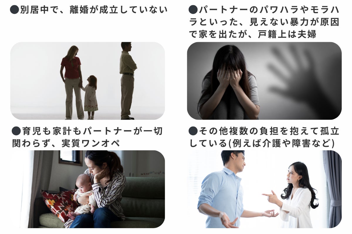 など、離婚をしていれば「ひとり親」と認められ、手当を受ける事ができますが、離婚をしていなければそういった手当を受ける事はできません。