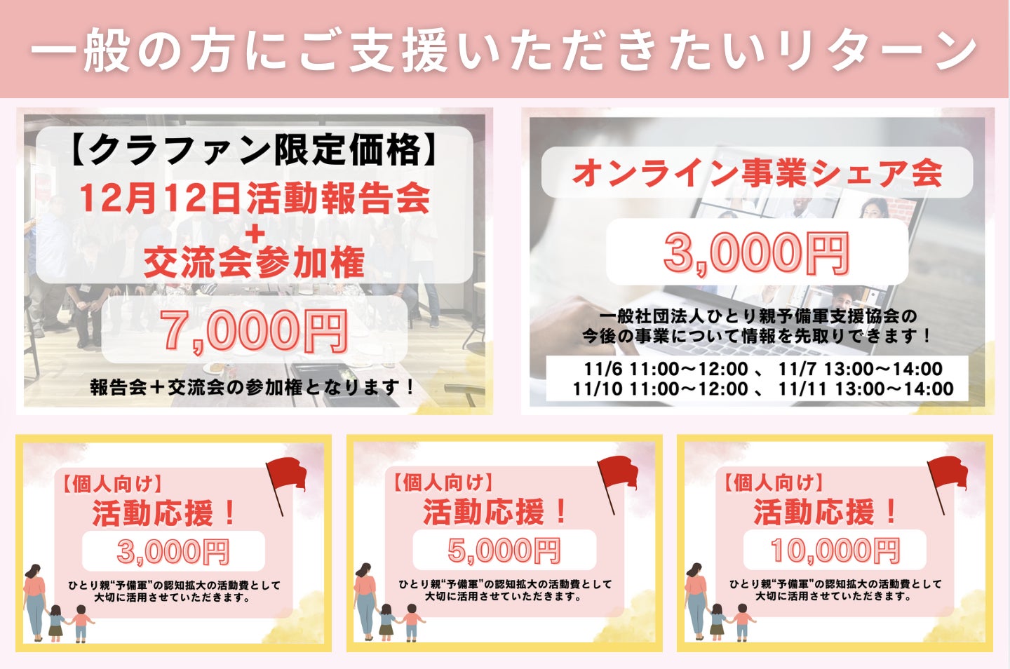 皆様のご支援が、1人でも多くのひとり親”予備軍の方々に安心を届ける事へ繋がります。