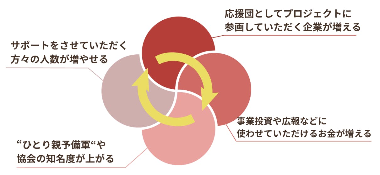 そのためには、ひとり親”予備軍”の認知度を上げていくための、事業投資や広報活動に力を入れていきます。