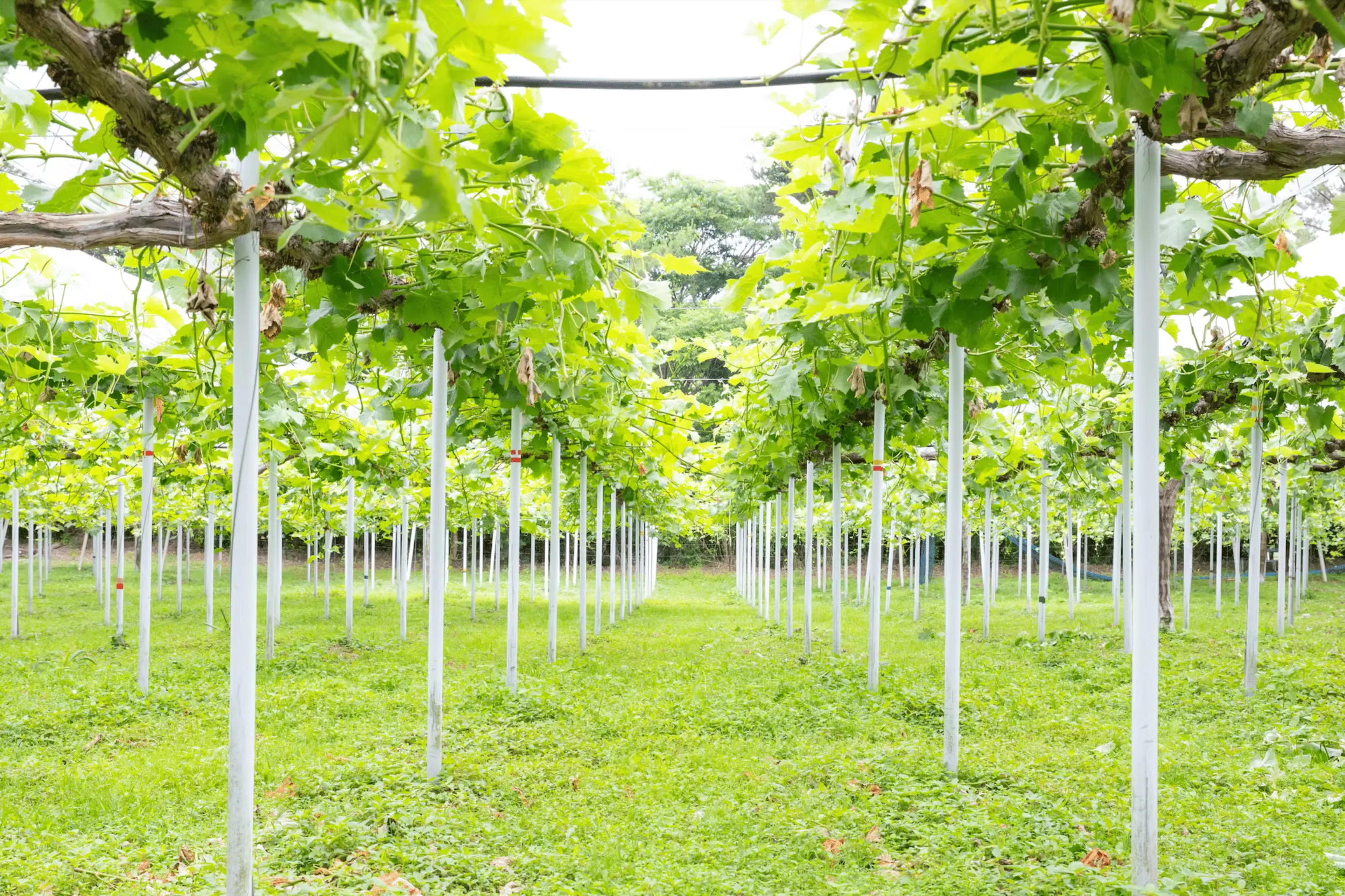 夏を迎えると、ぶどうの成長も加速化して行きます。