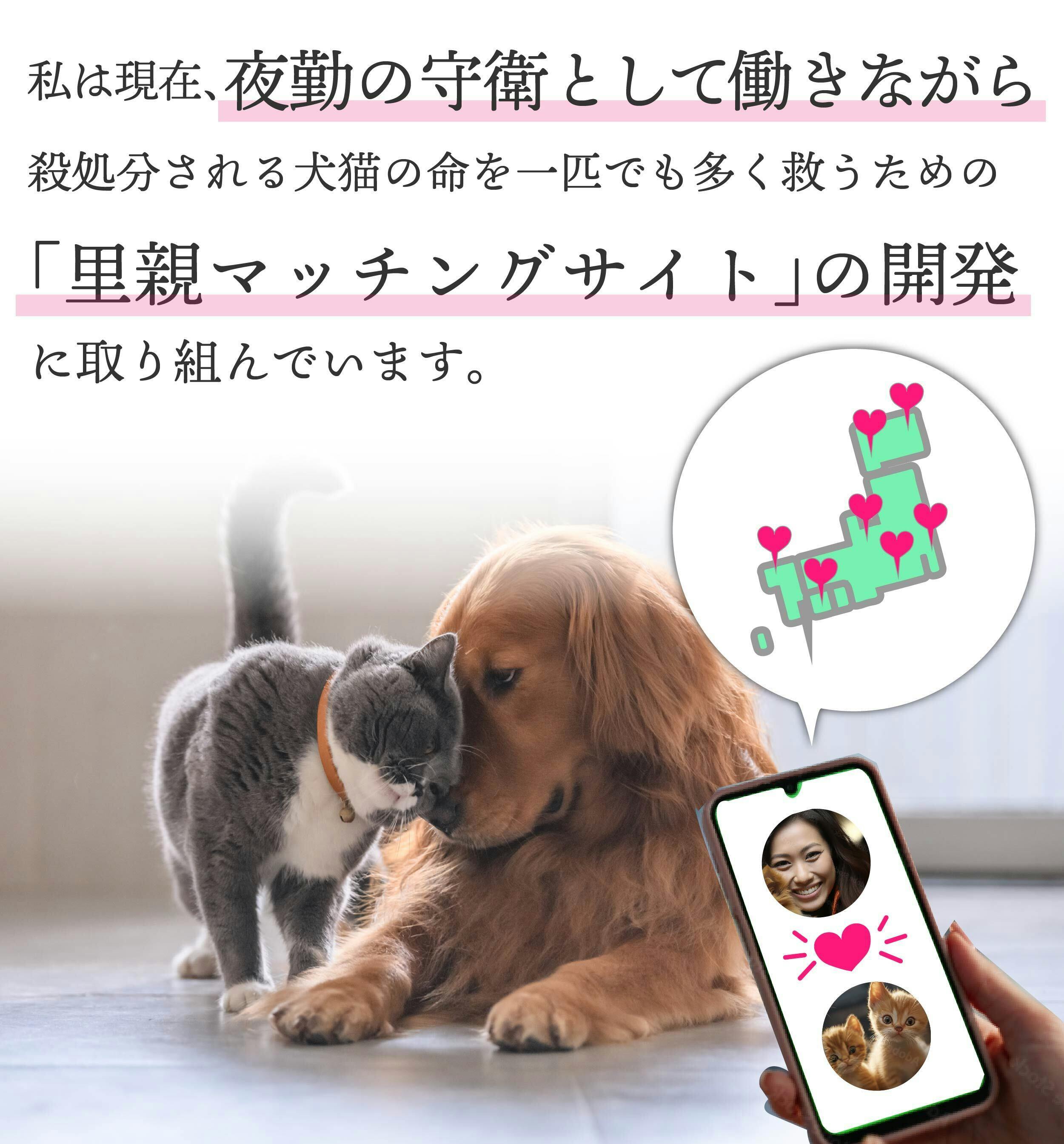 もっと見る里親マッチングサイトを作り殺処分を激減させたい。