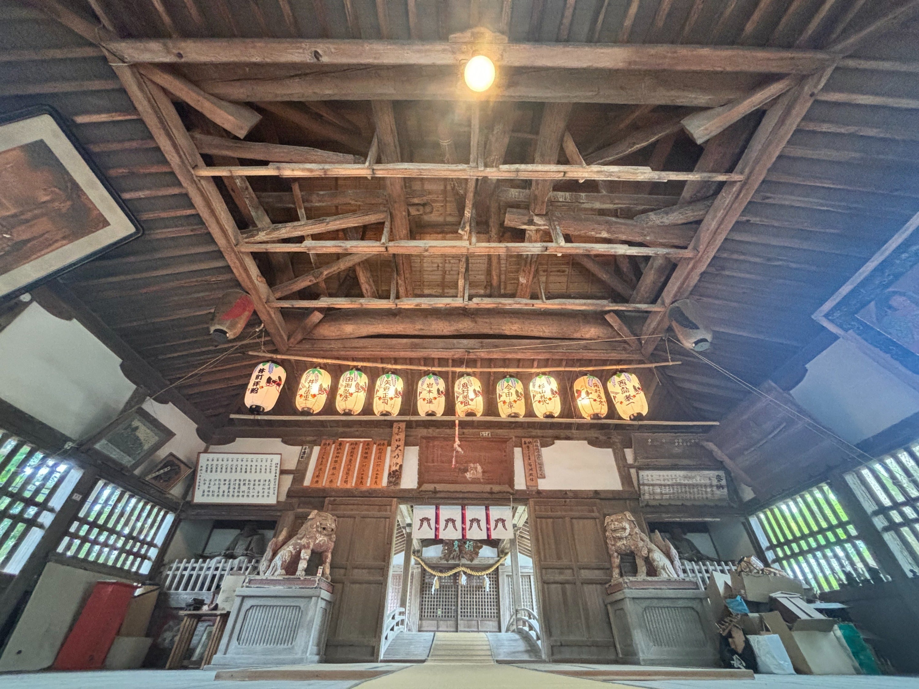 現在神社前にて式年祭支援の受付、総代の方に市内在住の方々へのご支援の呼びかけを手伝って頂いておりますが物価高騰、人口減少の影響により思うようには進んでおりません。修復に関しては文化財修復を得意とする協和建設工業様と数々の国宝・重要文化財の建造物彩色・修復に携われる馬場良治先生の協力の元神社拝殿より外し、雲龍図の状態を調査し、先生のアトリエにて令和十年の修復完了を目指して修復作業を行って頂いてるところです。