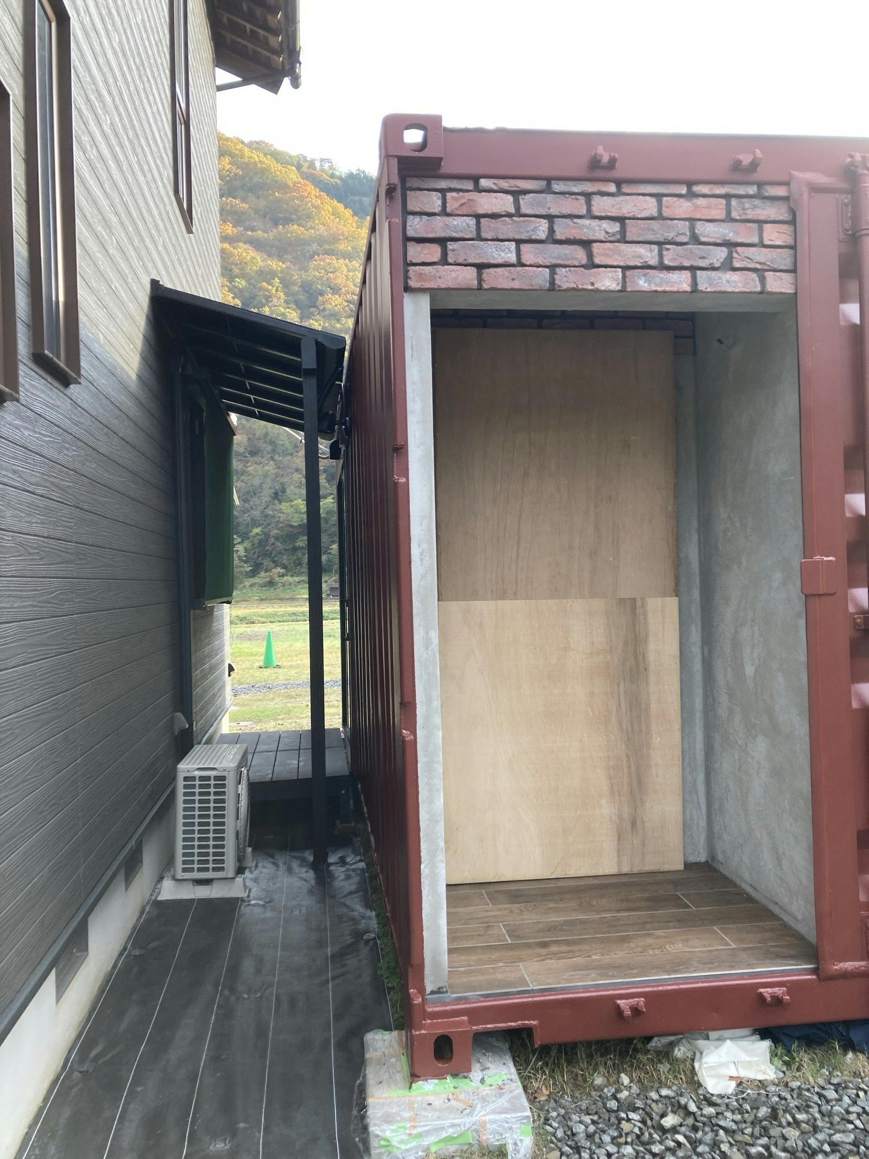 現在、外壁の塗装が進んでおり、レンガ色の外観が形になってきました。