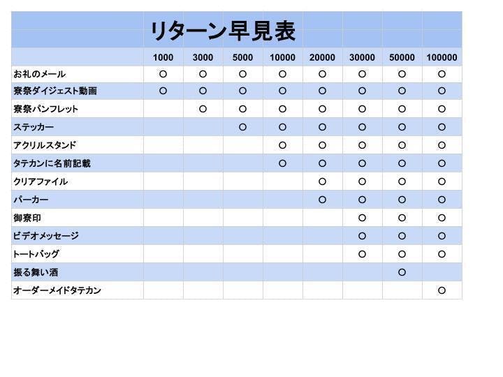 If the festival succeeds, we will send you our heartfelt thanks — and special return gifts