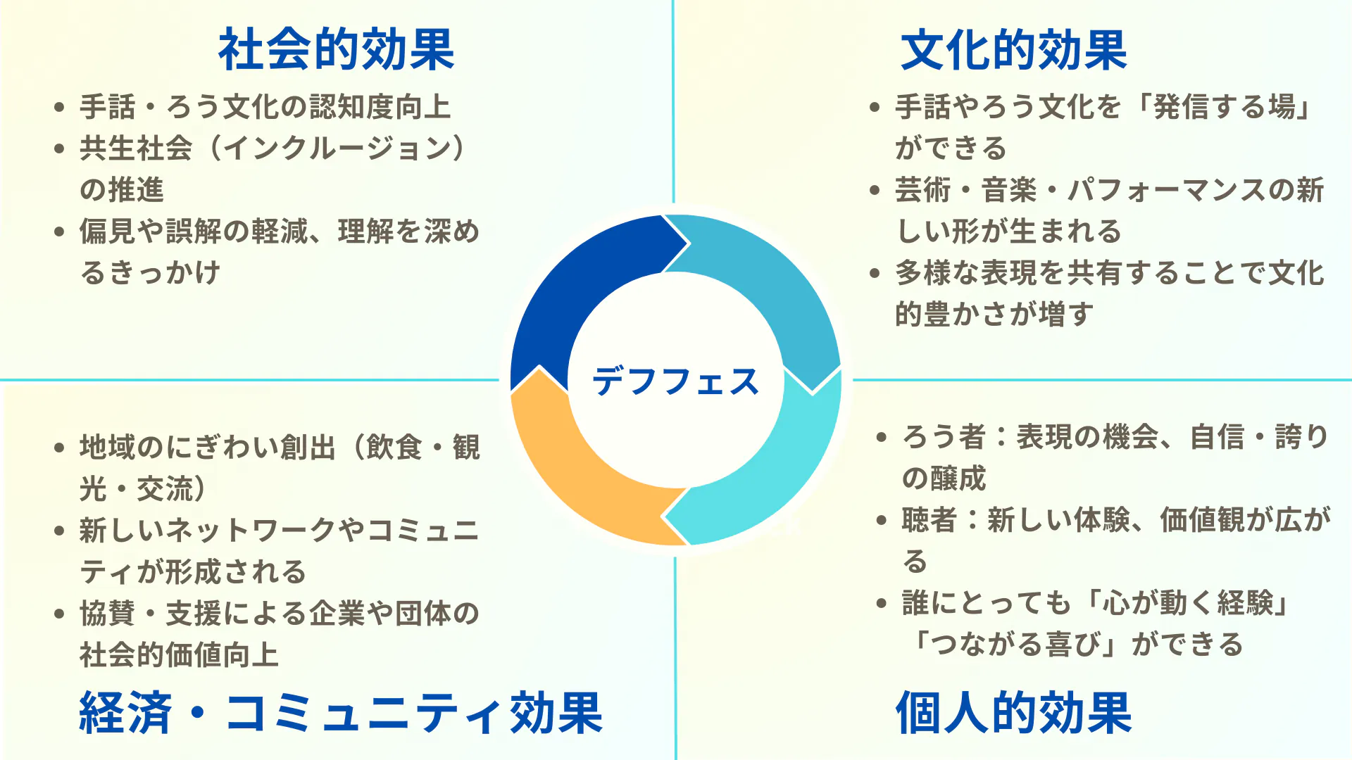 “Deaf Fest”をやることで、様々な効果が期待されます。