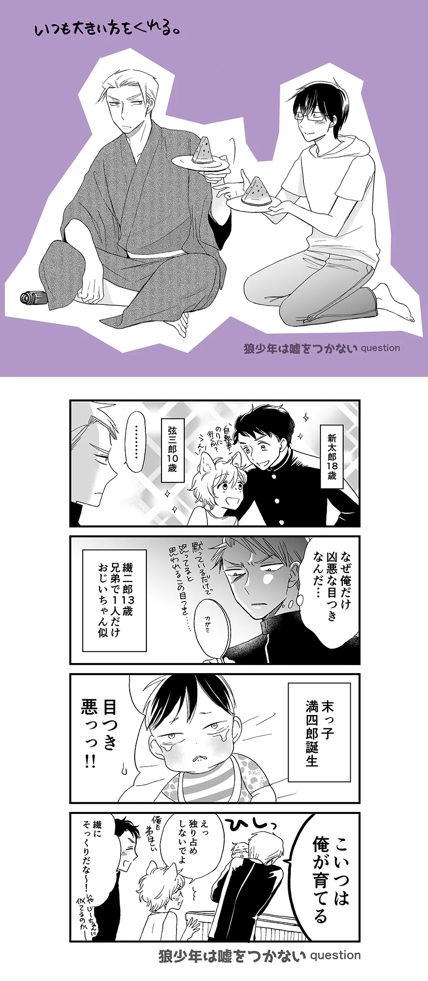 既刊の「狼少年は嘘をつかない」でも一番末っ子を実は甘やかしていた繊二郎ですが、続編でも溺愛っぷりは健在です。