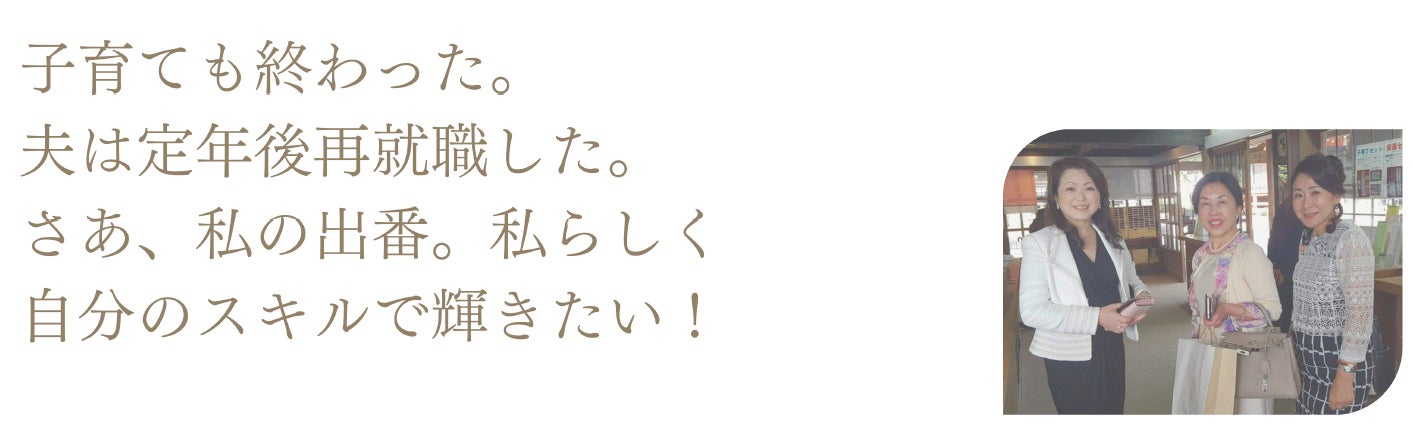 子育てで培った寄り添う力。 仕事で磨いた専門スキル。 人生で積み重ねた知恵と経験。