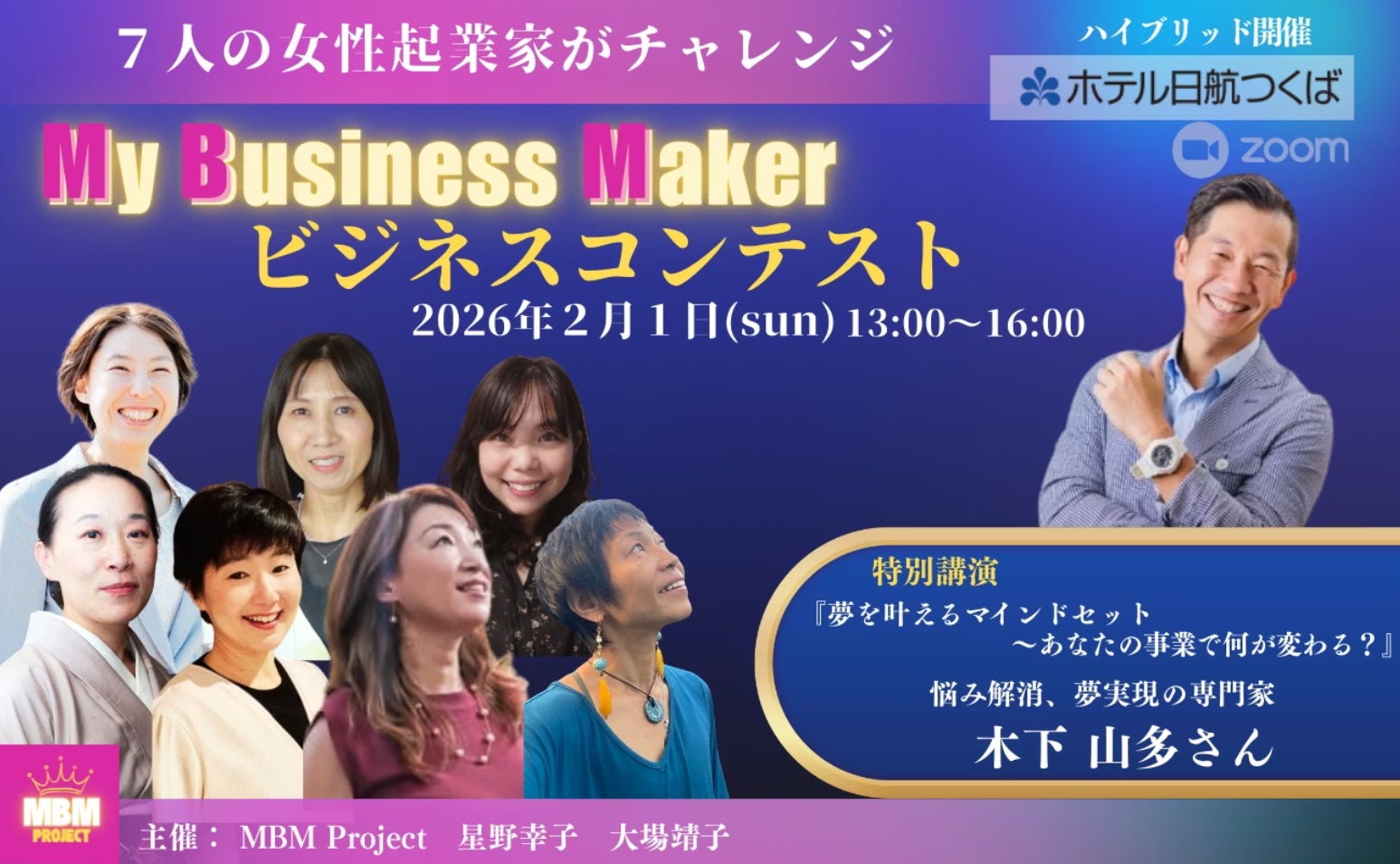 2025/12/27 17:13いつも温かいご支援をありがとうございます。みなさまのおかげで、この度2026年 2月1日に「女性起業家ビジネスコンテスト」 を開催する運びとなりました。クラウドファンディングにご協力いただいたおかげで、7名の女性たちが、それぞれのビジネスを カタチとして表現する場 をつくることができました。本当にありがとうございます。このコンテストは、ただの発表会ではありません。今まさに挑戦している彼女たちが、 ・ 未来に向かって大きな一歩を踏み出す瞬間 ・ 自分の想いとビジネスをひとつにする瞬間を、舞台の上で言葉として届ける時間です。この2月1日という日は、彼女たちにとって ビジネスの今後を動かす最初の一歩目 になります。だからこそ、みなさんにはぜひこの場に来ていただきたいのです。直接その瞬間を共有していただくことで、 ・挑戦の舞台に立つ7名へのさらなる応援・後押し ・彼女たちの人生が変わる瞬間の 目撃者になってほしいと心から思っています。━━━━━━━━━━━━━━━ 特別登壇者紹介:木下山多さん━━━━━━━━━━━━━━━今回、コンテストの審査やメッセージにも深く関わってくださるのが、木下 山多(きのした さんた)さん です。木下さんたさんは、合同会社 un-Limited School の代表として、体験型の講演・セミナー・研修を全国で行っている方です。元々は大手商社に勤務し、海外や多様な現場を経験した後、教育の現場へと転身されました。そして、その経験を活かして企業研修やカウンセリング、心理学ベースのワークや教育プログラムを提供されています。独立後は、日本全国だけでなく海外でも講演活動をされており、数冊の著書でも幅広い読者に支持されています。多くの方からは、「自分の中に眠っていた想いや可能性が、言葉と体験を通じて一気に開かれた」「楽しいだけでなく、腑に落ちる気づきがある」という感想が届く、魅力ある語りと問いかけのある方です。(ページに掲載されている本人紹介文はぜひご参照ください)https://joseikigyouka-contest-kwiq0ep.gamma.site/━━━━━━━━━━━━━━━こんな方にぜひ来てほしい━━━━━━━━━━━━━━━✔︎ 起業や挑戦に興味がある✔︎ 新しい一歩を踏み出すきっかけがほしい✔︎ 素直に応援したい気持ちをカタチにしたい✔︎ 目の前で成長の瞬間を見届けたいそんな方にとって、このコンテストは 単なるイベント以上の時間 です。勇気ある挑戦者を、あなたの存在で応援してあげてください。━━━━━━━━━━━━━━━ご参加方法━━━━━━━━━━━━━━━当日は会場でのご参加はもちろん、Zoomでのオンライン参加もご用意しています。現地でも画面越しでも、同じ空間に立ち会っているような気持ちで応援していただけます。そして当日は、会場近くで懇親会も開催されます。美味しいお料理とアルコールもフリードリンクで用意させていただきました。こちらもぜひ。交流懇親の場として合わせてご参加ください。━━━━━━━━━━━━━━━下記のリターンからご支援くださった方━━━━━━━━━━━━━━━◆サポーター部門 【5,000円】 未来応援サポーター ◆サポーター部門【10,000円】 プレミアム応援サポーター◆サポーター部門【15,000円】 プレミアム応援サポーター 上記のリターンからご支援くださった方は、会場・Zoomいずれにしても無料でご参加いただけます。お申し込み方法はメールでお送りしますのでメールボックスをご確認くださいませ。当企画について、詳しくはこちらからhttps://joseikigyouka-contest-kwiq0ep.gamma.site/最後に、もう一度だけ…この企画がここまで進んだのは、みなさまのご支援があってこそ です。心からの感謝を込めて、当日お会いできることを楽しみにしています。ぜひ、2月1日をご一緒に。MBMPROJECT 主宰 星野幸子・大場靖子 もっと見る【クラウドファンディング終了のご報告と感謝を込めて】