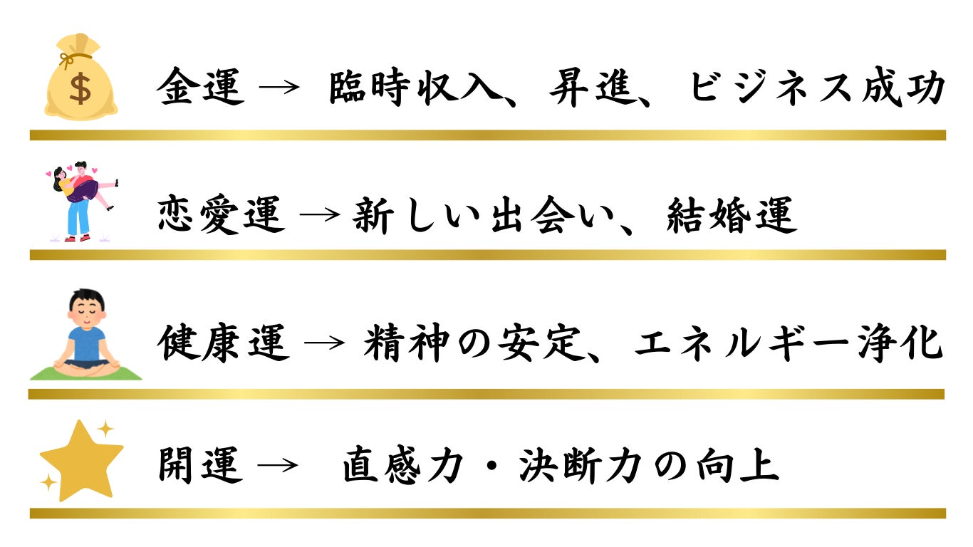 持つだけで金運・仕事運・成功運を高め、前向きなエネルギーを与えてくれといわれています。