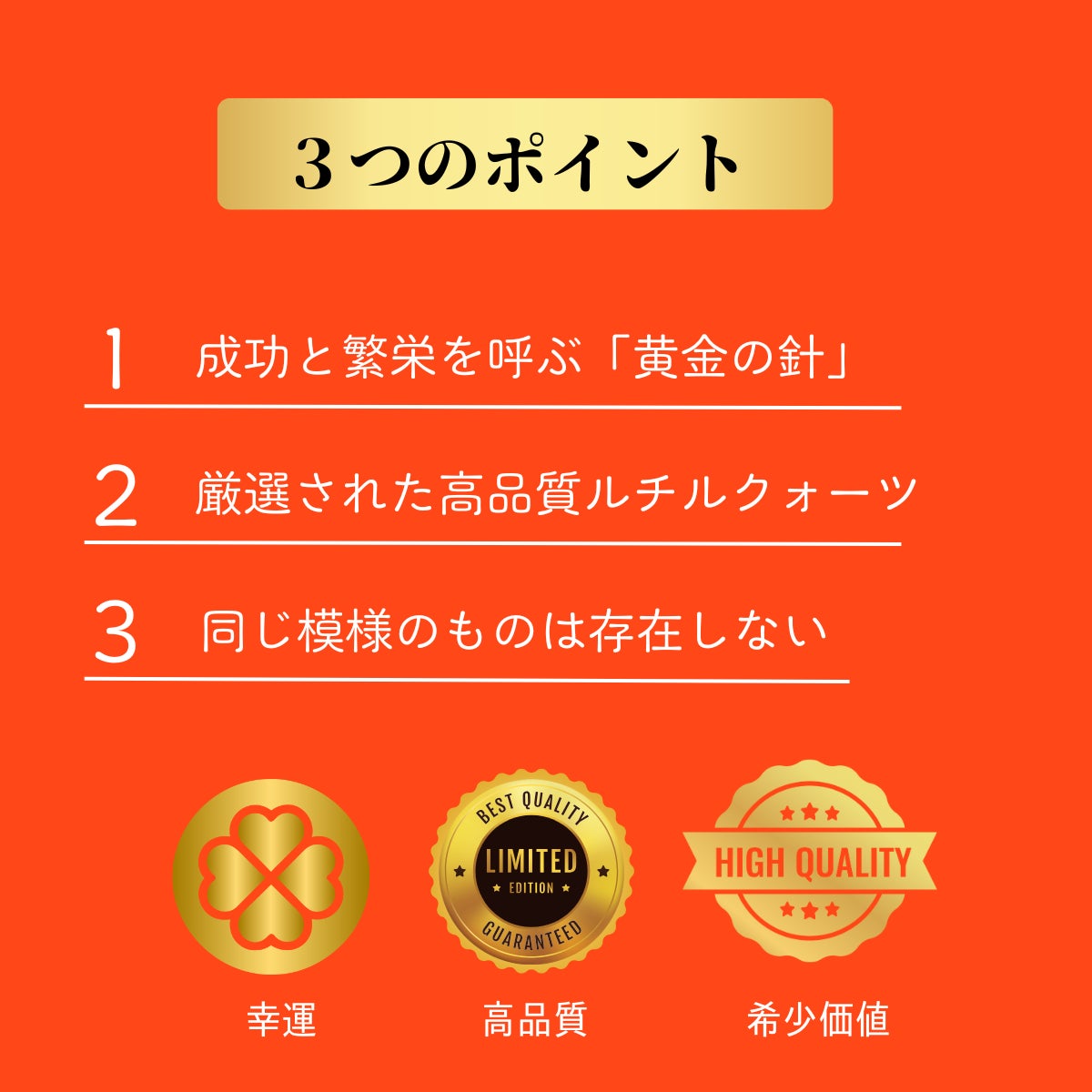黄金に輝くルチルが、まるで幸運を呼び込む光の矢のようにあなたを導きます。