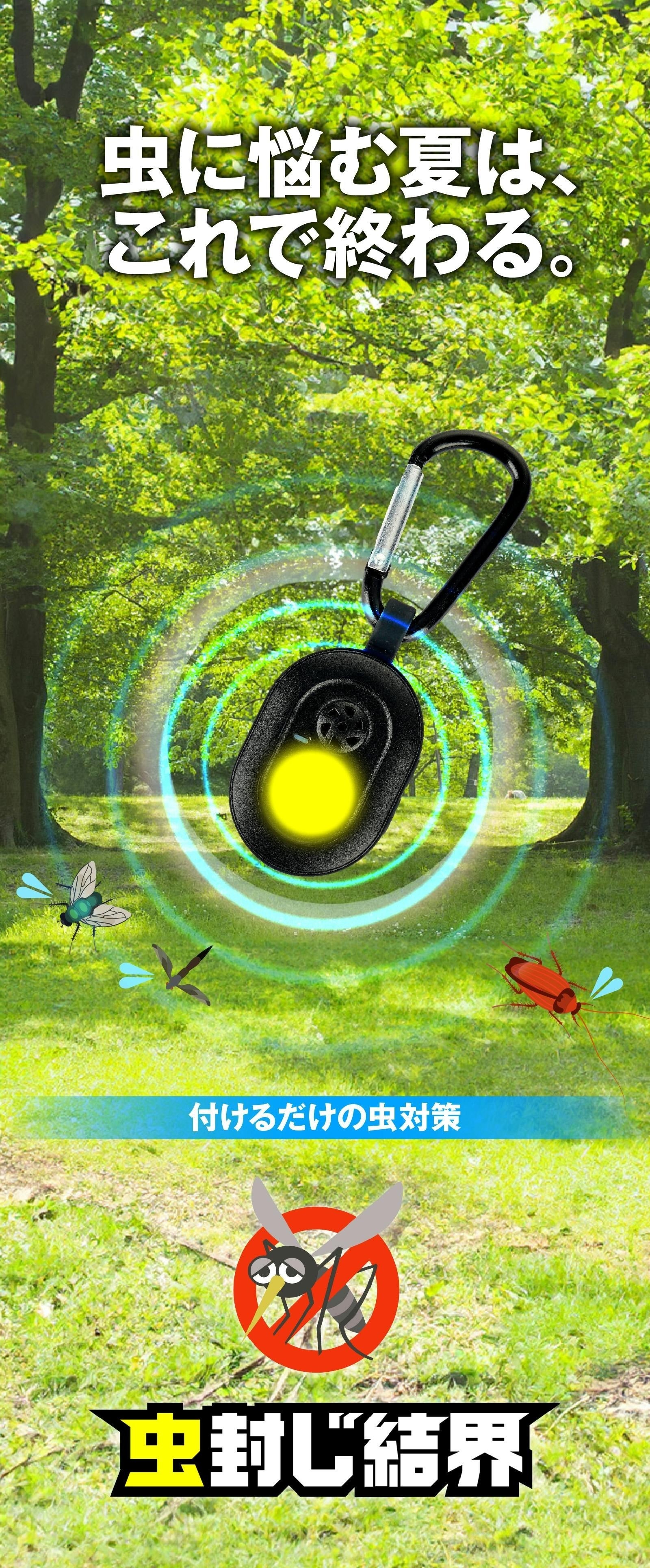 【虫封じ結界】は音波と光で不快な虫が近寄らなくなる虫よけグッズです。