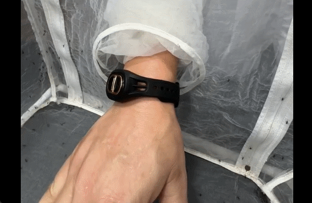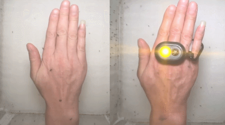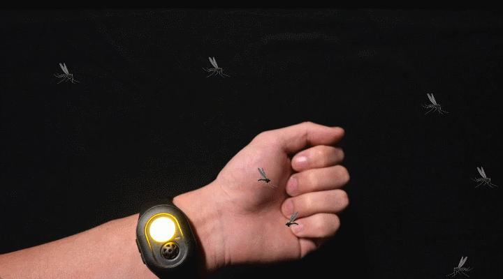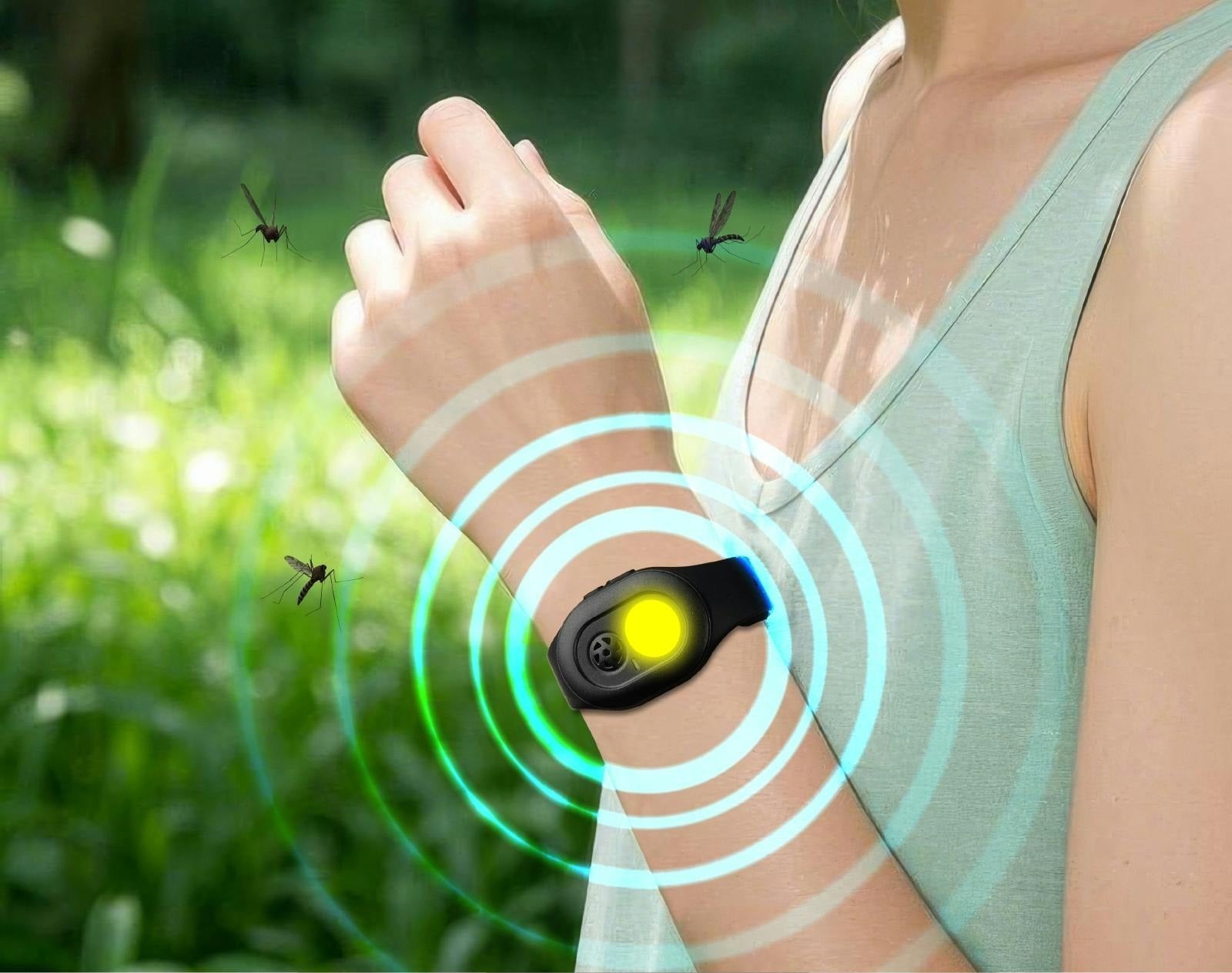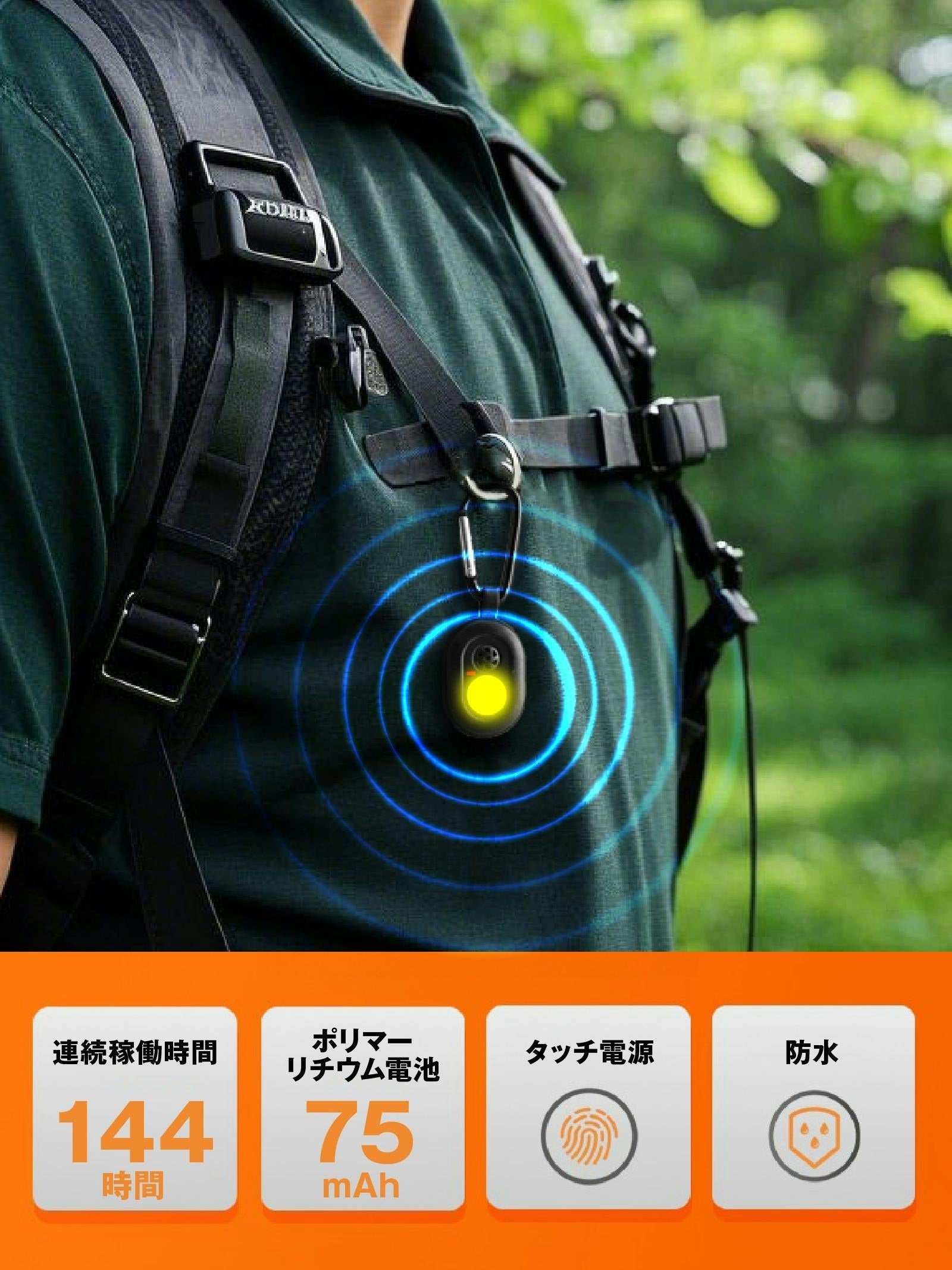 充電式で長時間に渡り音と光で体の周囲に見えないバリアを張り、不快害虫の侵入を抑制します。