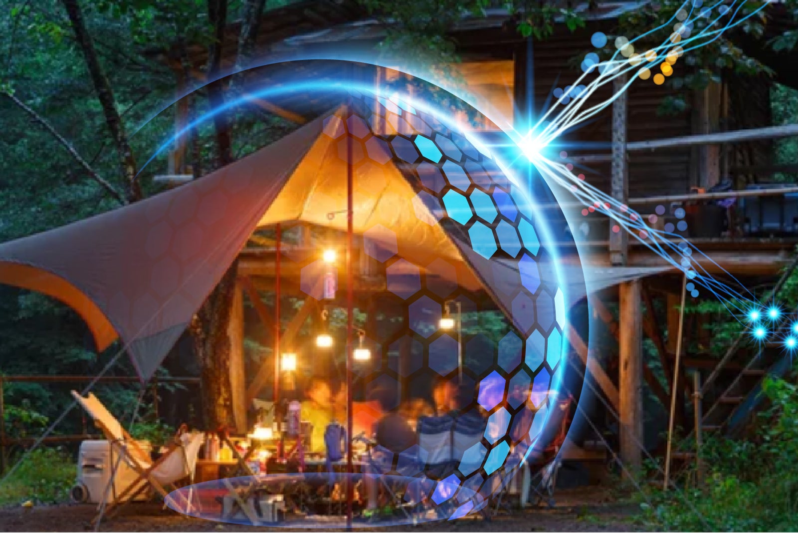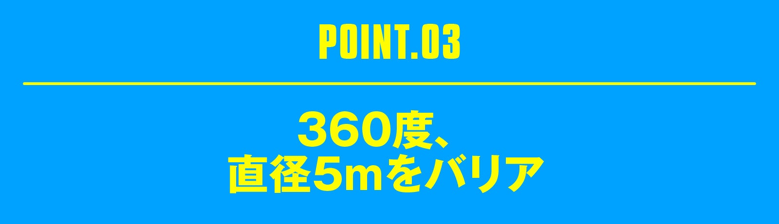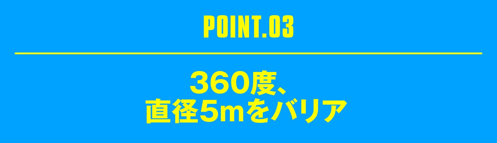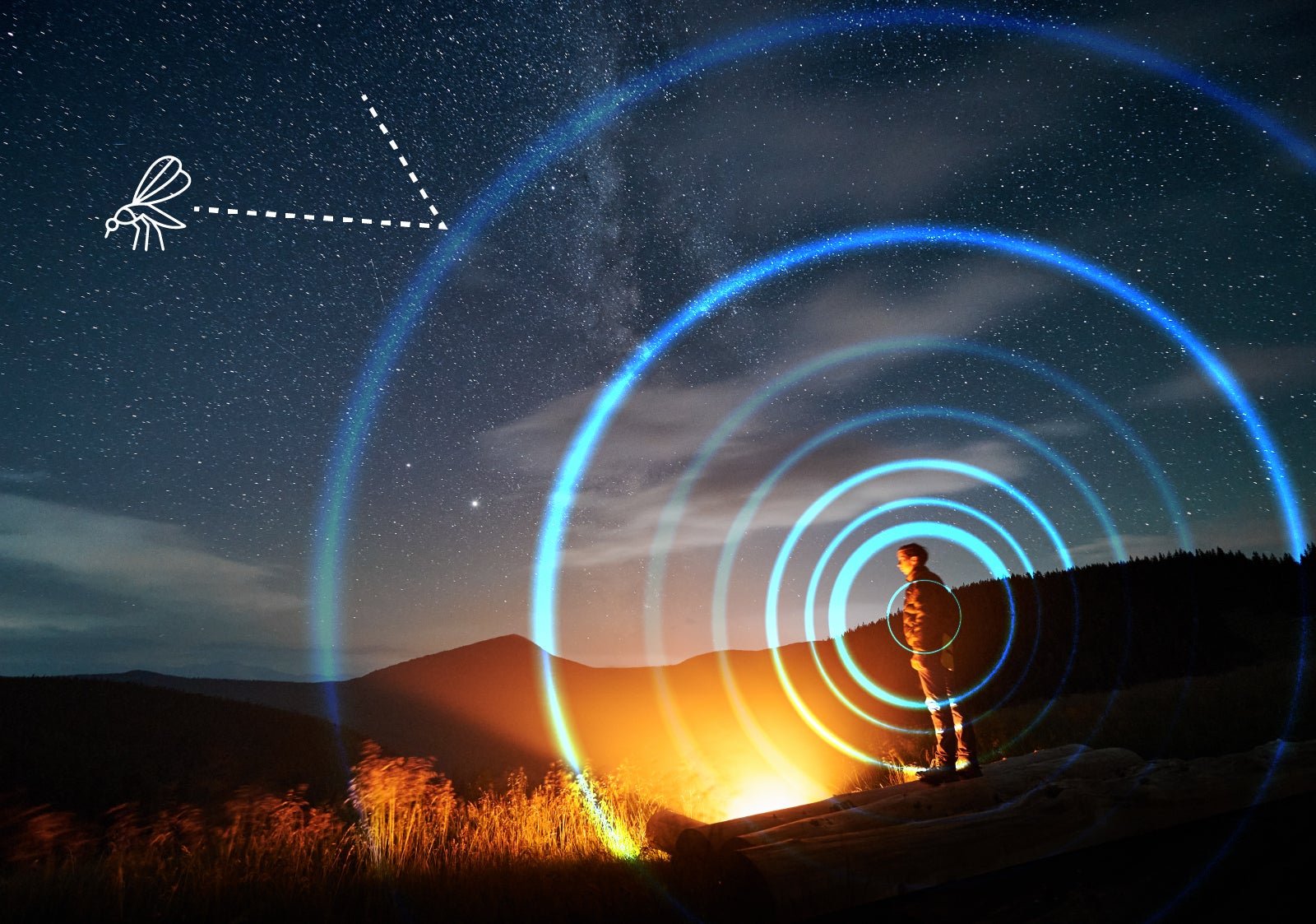 虫よけスプレーは塗った場所しか効果がありませんが、音波と光を使う【虫封じ結界】の有効範囲は360度、最大で直径5m(約20平方メートル)にも及びます。※