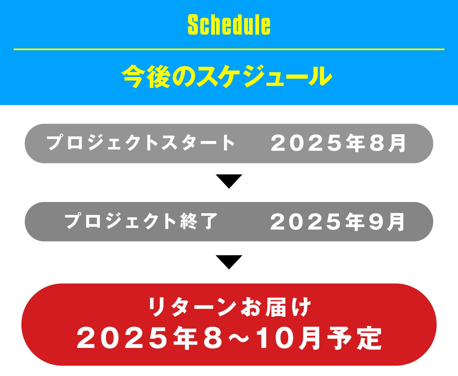 ◯ 引渡し時期: 各リターン詳細に記載の発送予定月を引き渡し時期とします。但し、開発・生産状況によって遅れが生じる場合がありますのでその際は当プロジェクトページ内の「活動報告」または支援者へのメール等で連絡します。