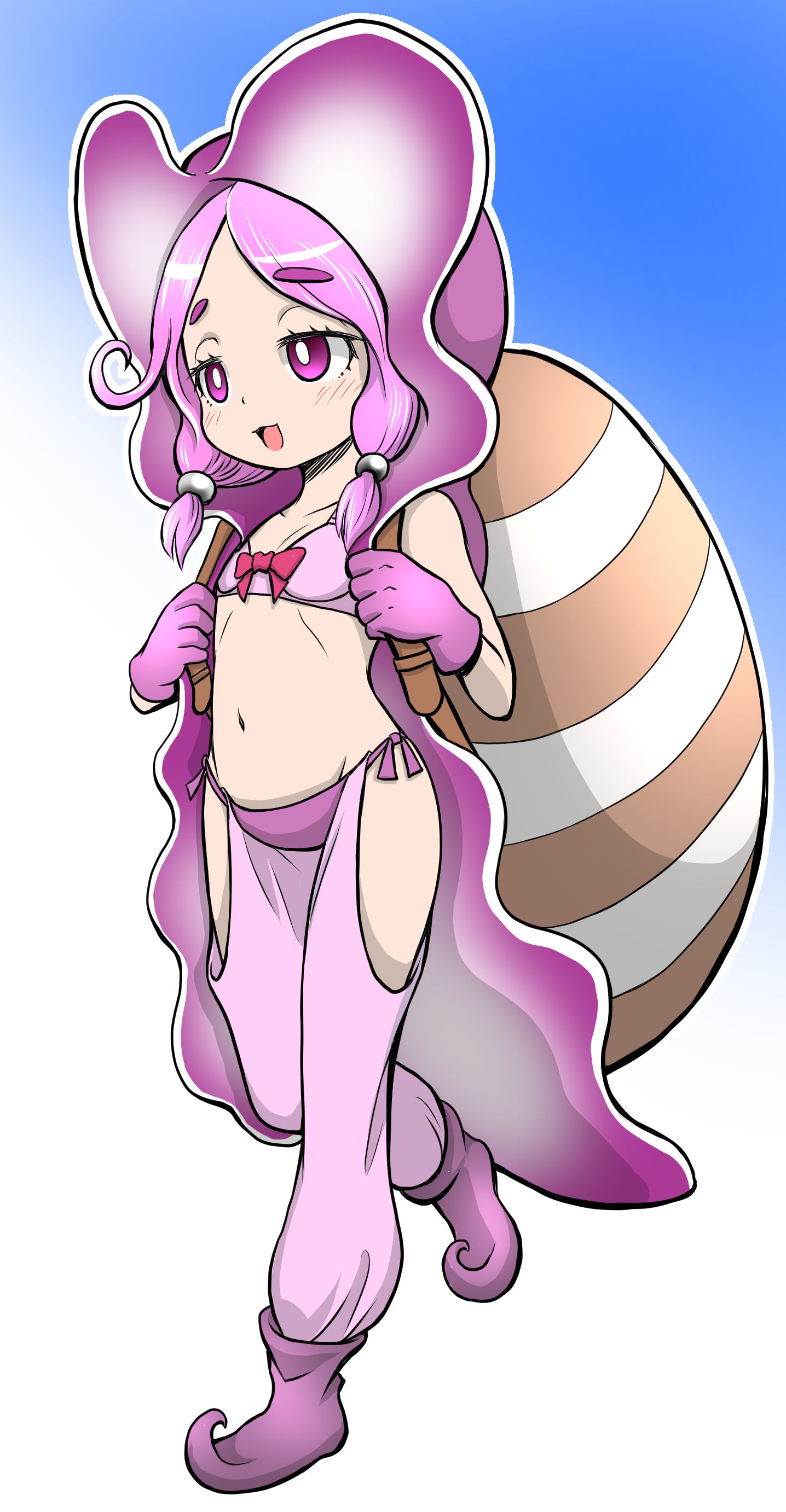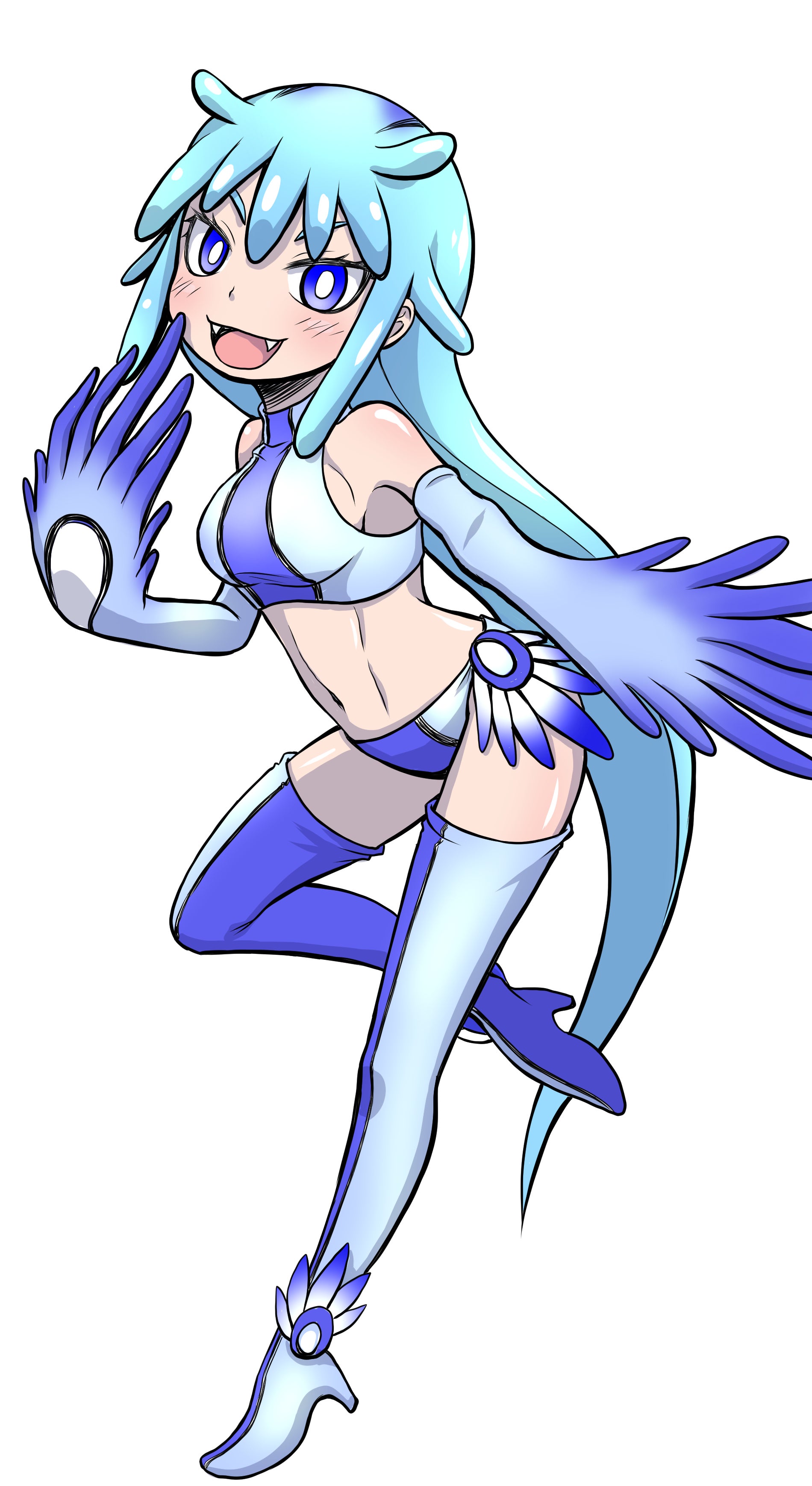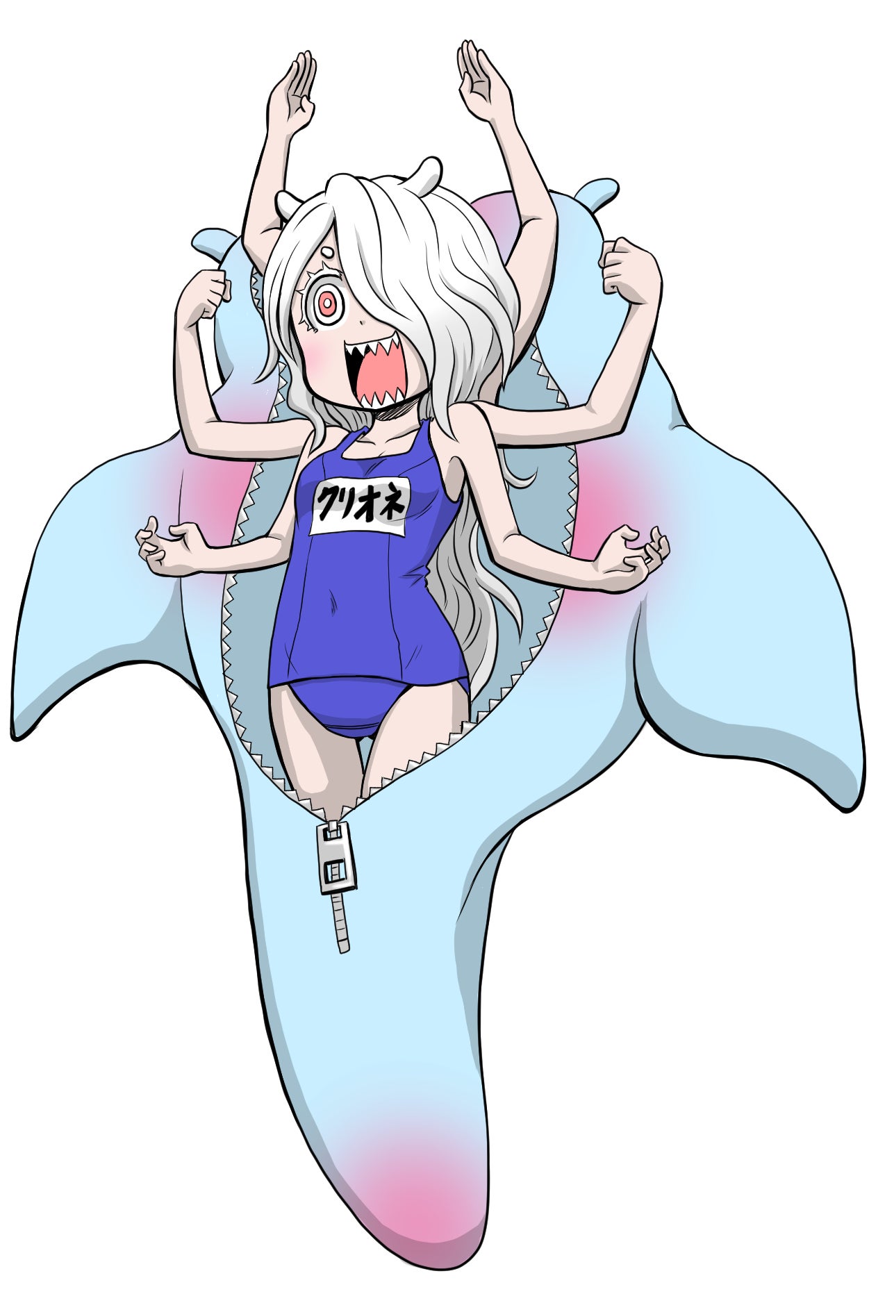 ウミウシではありません(直球)なのにウミウ士として活躍するのでしょうか?実在のハダカカメガイは捕食する際バッカルコーンという6本の触手を広げることはもう有名ですね。なので6本腕です。何故スク水なのか描いた本人もわかりません。