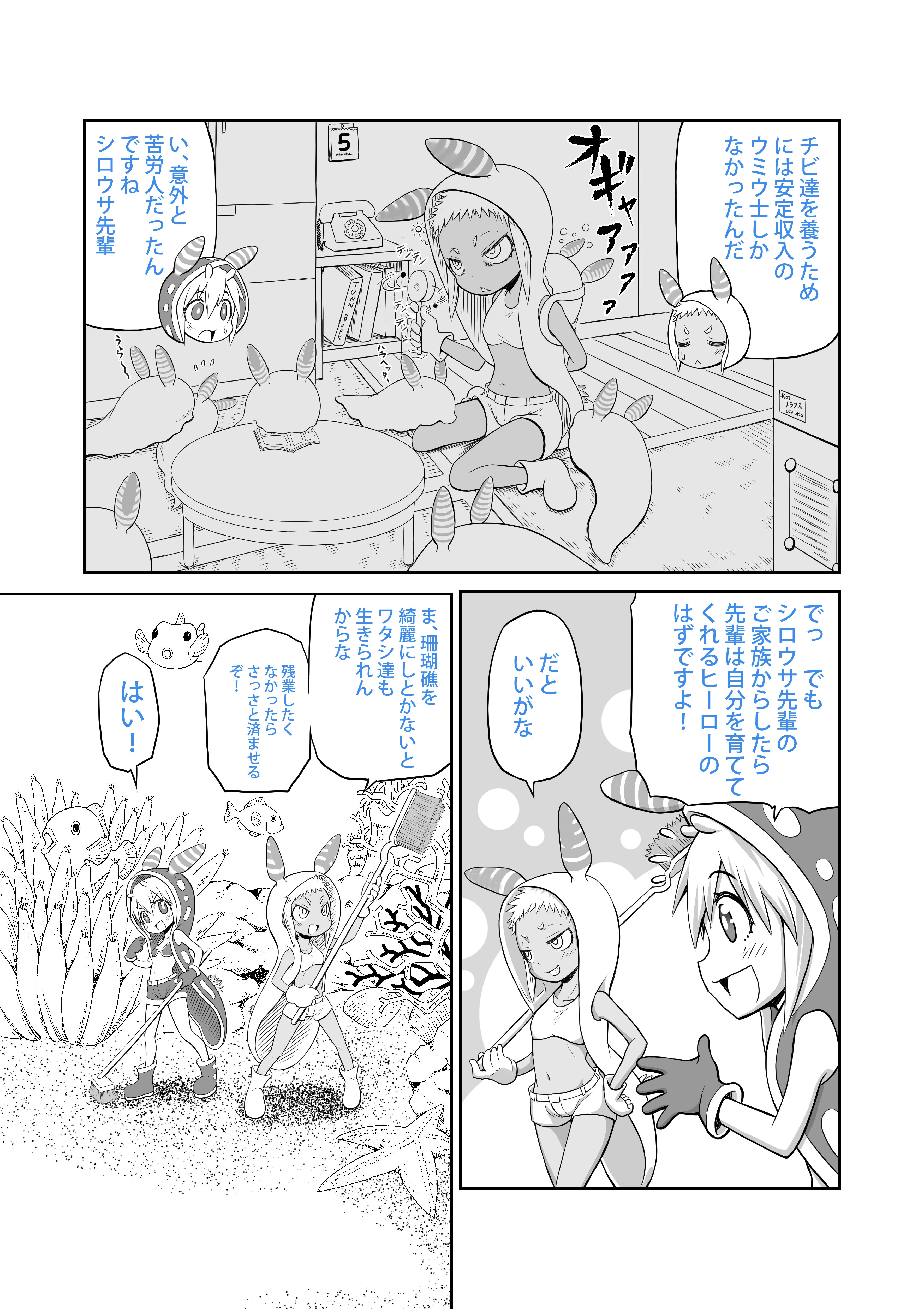 家族の為にウミウ士になったというシロウサ先輩。小さい子供達は自分の子ではなく、あくまでも弟妹(きょうだい)だそうで・・・ご両親は何処行ったんですかね・・・?(考え中)
