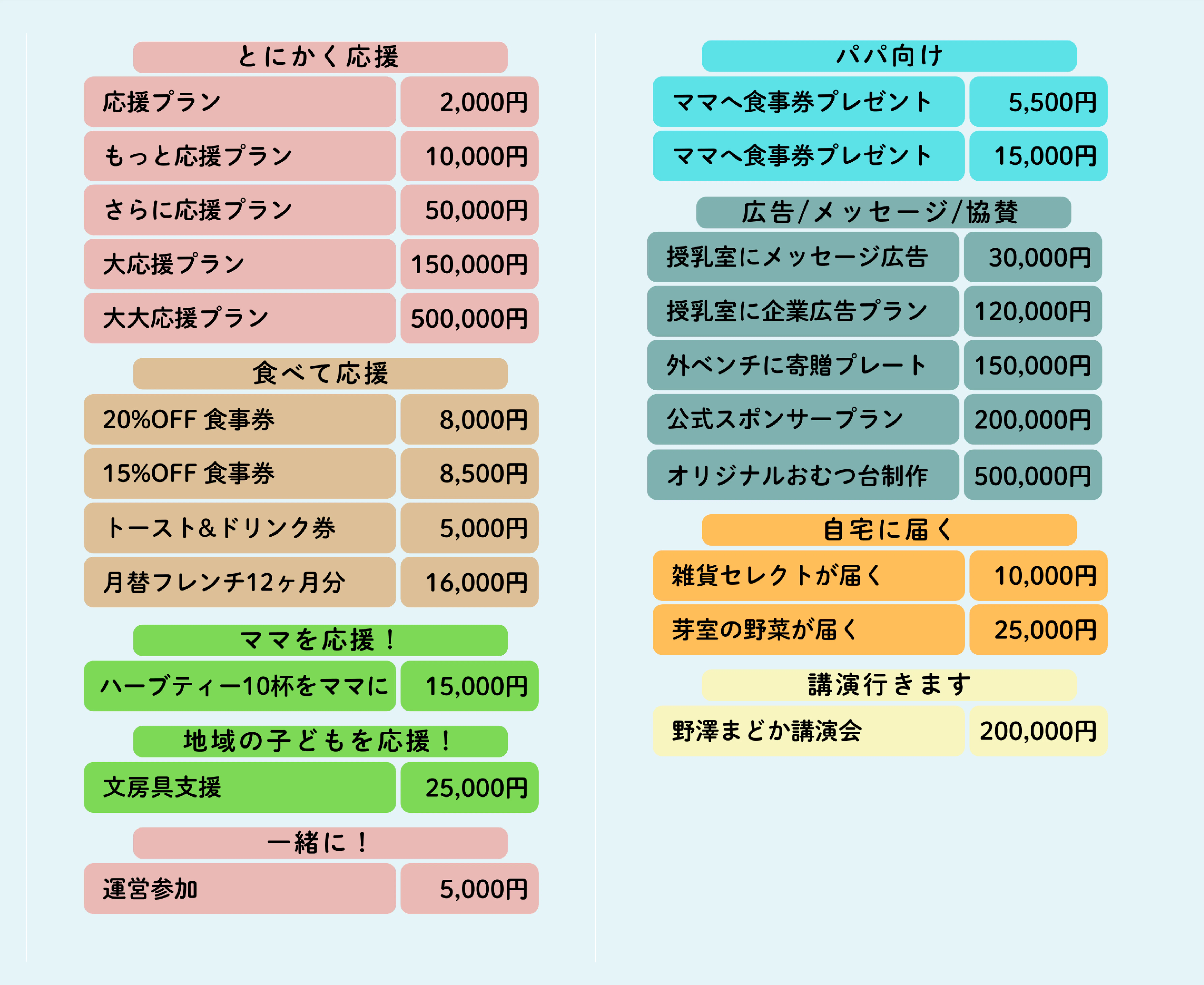 声や想いを届けたい方へ:ママへの応援メッセージや、広告・協賛として関われるリターン