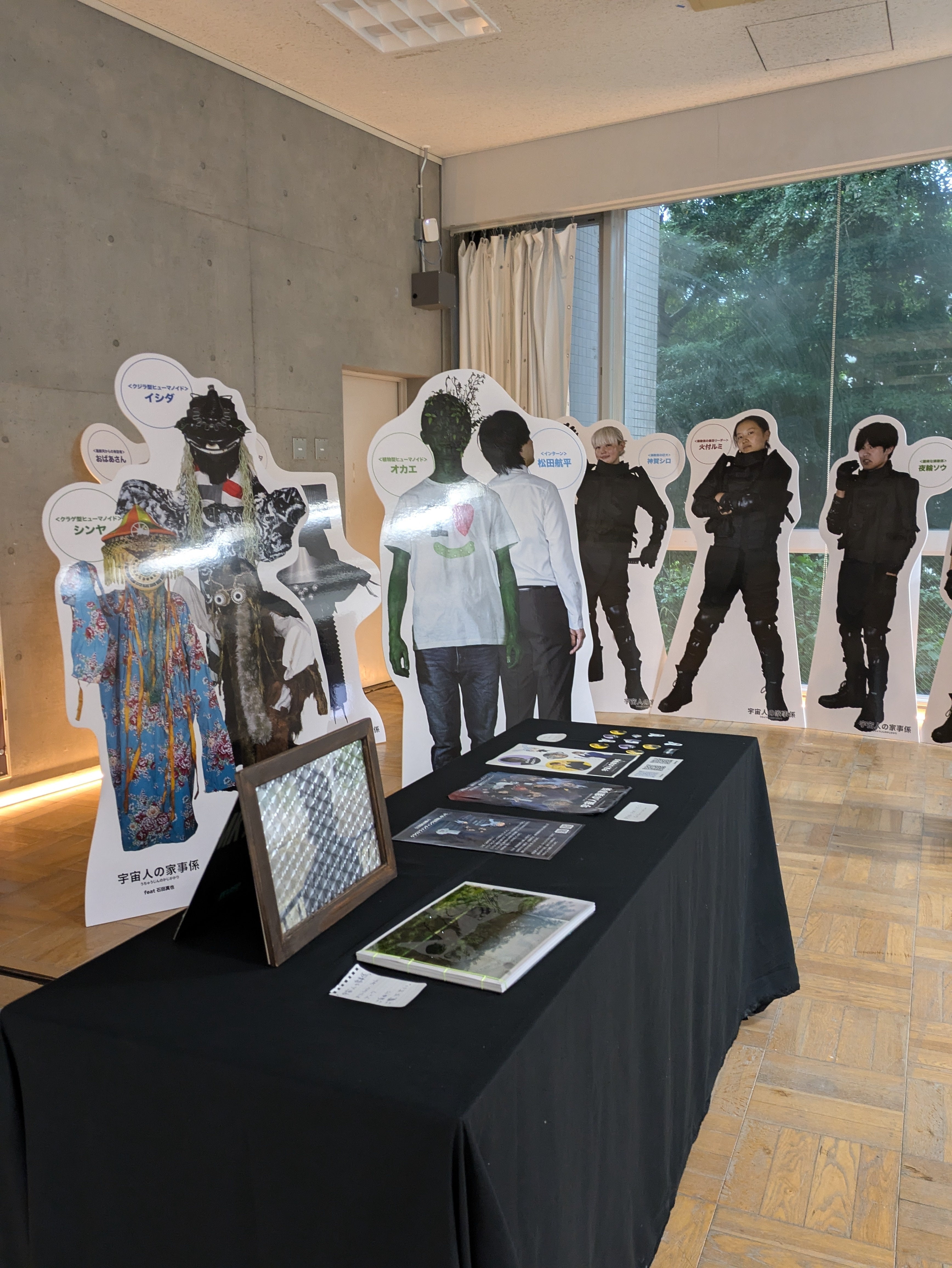 東京藝術大学『藝祭2025』にて、『誰も知らない!家事係の世界展』を開催中です!雨天にも関わらずたくさんの方にお越しいただけており、大変賑わっております!1年前、たった2人で始めたこの企画を展示という形でお披露目できたことを嬉しく思いますし、たくさんの友達の協力を得て、想像の中だけの存在だったキャラクターが、等身大パネルやショートムービーの中に具現化されたことは感慨深くもあります。ですがこれは始まりに過ぎません。ここから、アドベンチャーゲーム本編の制作が始まります。ご支援いただいた方、展示に来場いただいた方、ご興味を持ってくださった方々、たくさんの応援に応えられるよう、そして最高の作品を届けられるように、死力を尽くして制作に臨もうと思います。『家事係の世界展』は明日、明後日も開催しています。会場ではキャラクターの等身大パネルのほか、『本編PV』やショートムービー、フォトブックなどを展示しています。皆様のご来場をお待ちしております!