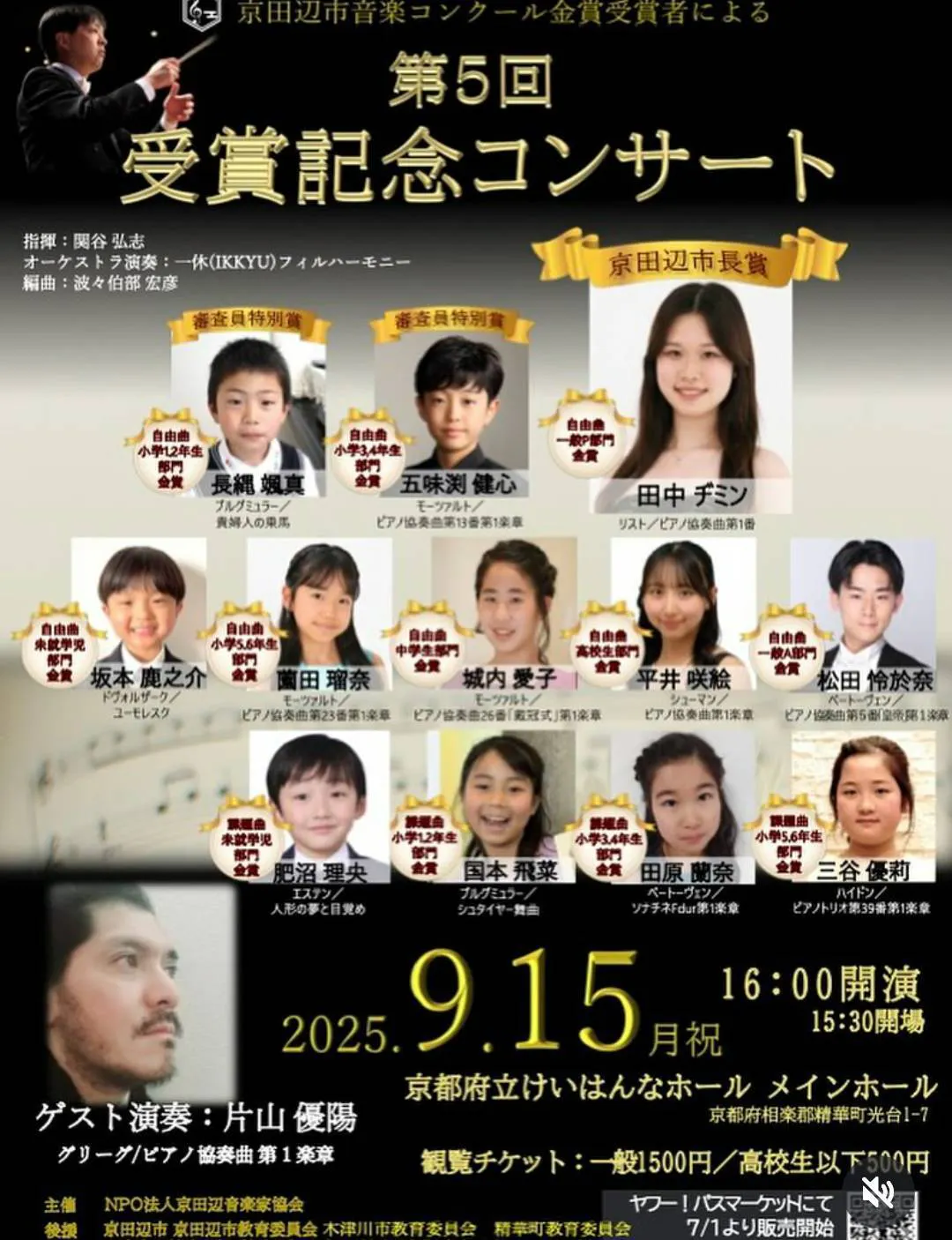 9月15日(祝) 受賞記念コンサート開催(京都府立けいはんなホール メインホール/16時開演)