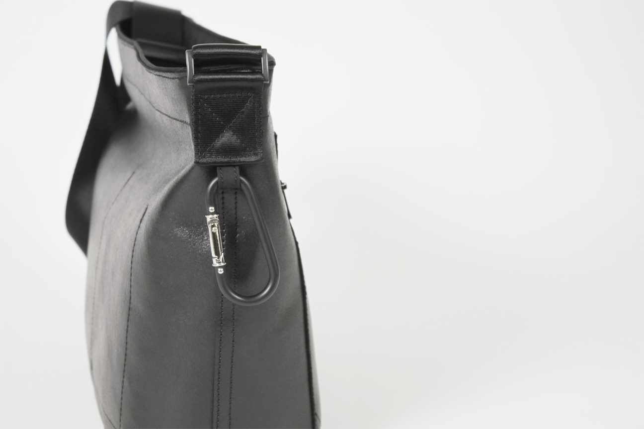 ・東レ・ウルトラスエード®:このプロダクトは、レザーライクながら、動物性の資材を使わずにつくられています。日本が世界に誇る人工皮革のウルトラスエード®。そのスエード面を銀面調へと加工した素材が今回バッグにつかっているウルトラスエード®NUになります。ウルトラスエード®は革と同等ほどの価値を持つ為高級ですが、この素材でしか成り立たないデザインをつくることができま す。この素材は革のような厚みがありながら軽く、繊維構成がより均一な為、革より品質の均一性があります。加えて最大の特徴は、自立するほどしっかりしていて復元力があるこ と。メイン資材として、余計な芯材を使わずにあえて裏地をなくして、カメラバッグとは思えない660gという軽さを実現し、日常使いの負担を軽減します。