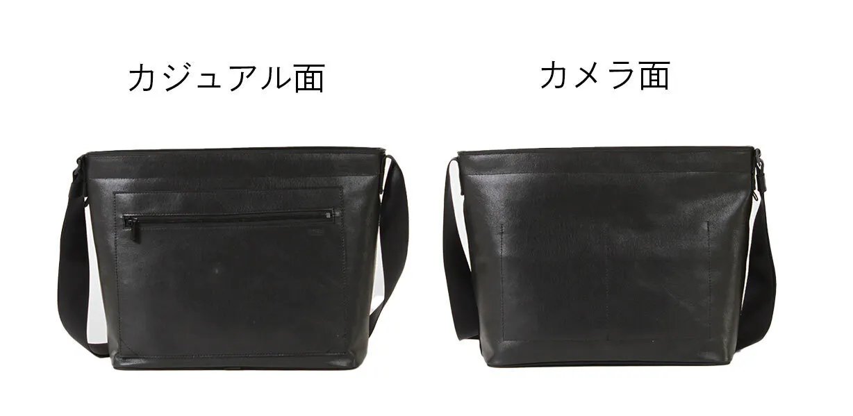 ファスナーを配したカジュアルな表面と、金具を一切排したカメラ面を持つリバーシブルなデザイン。カメラ面はカメラと一緒に肩から提げた際に、バッグの金具がカメラ本体に接触して傷をつけるリスクを排除するという、細やかな配慮を徹底しました。