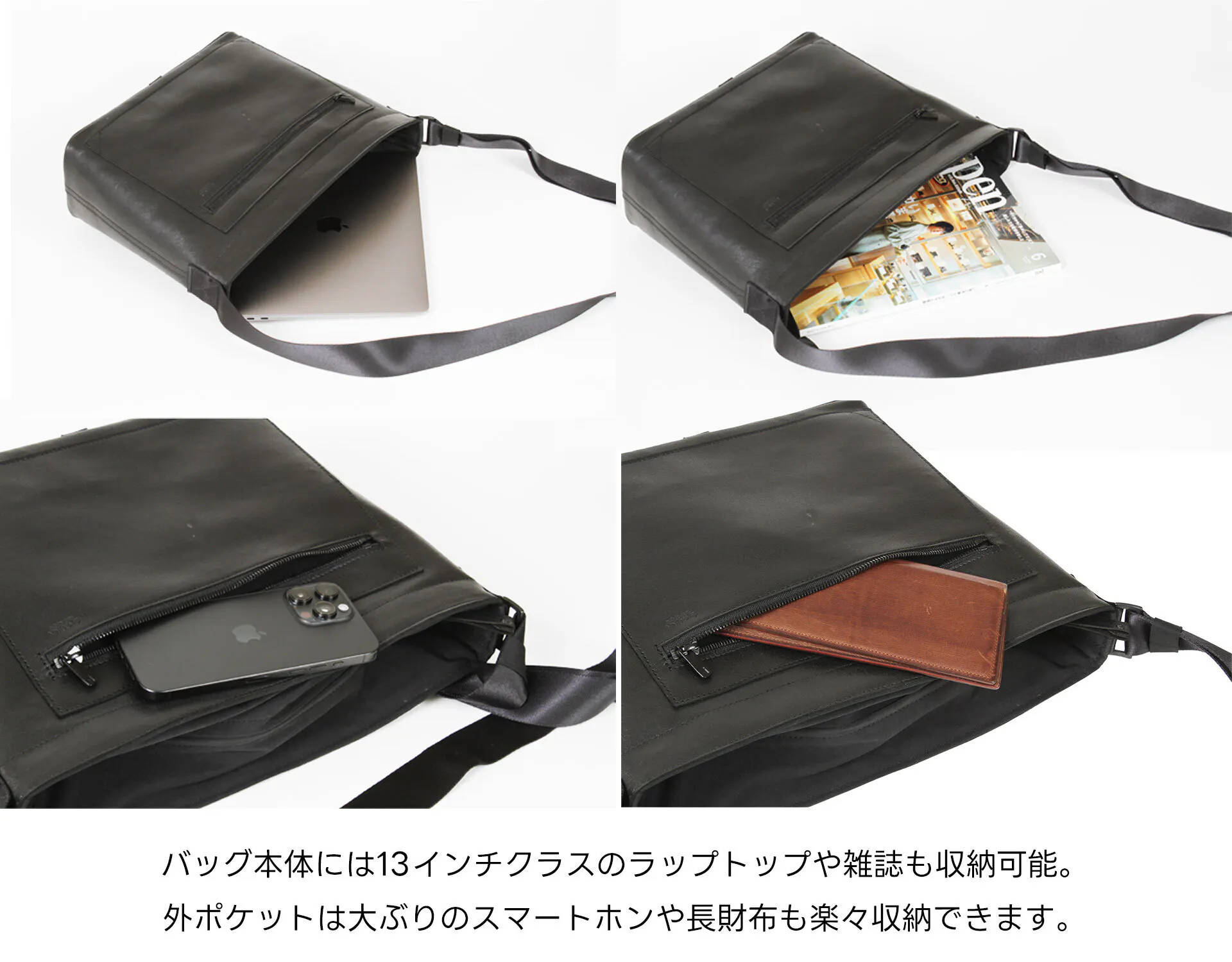 コンパクトで軽量でありながら、13インチクラスのノートパソコンや、A4ファイルも入る大容量。