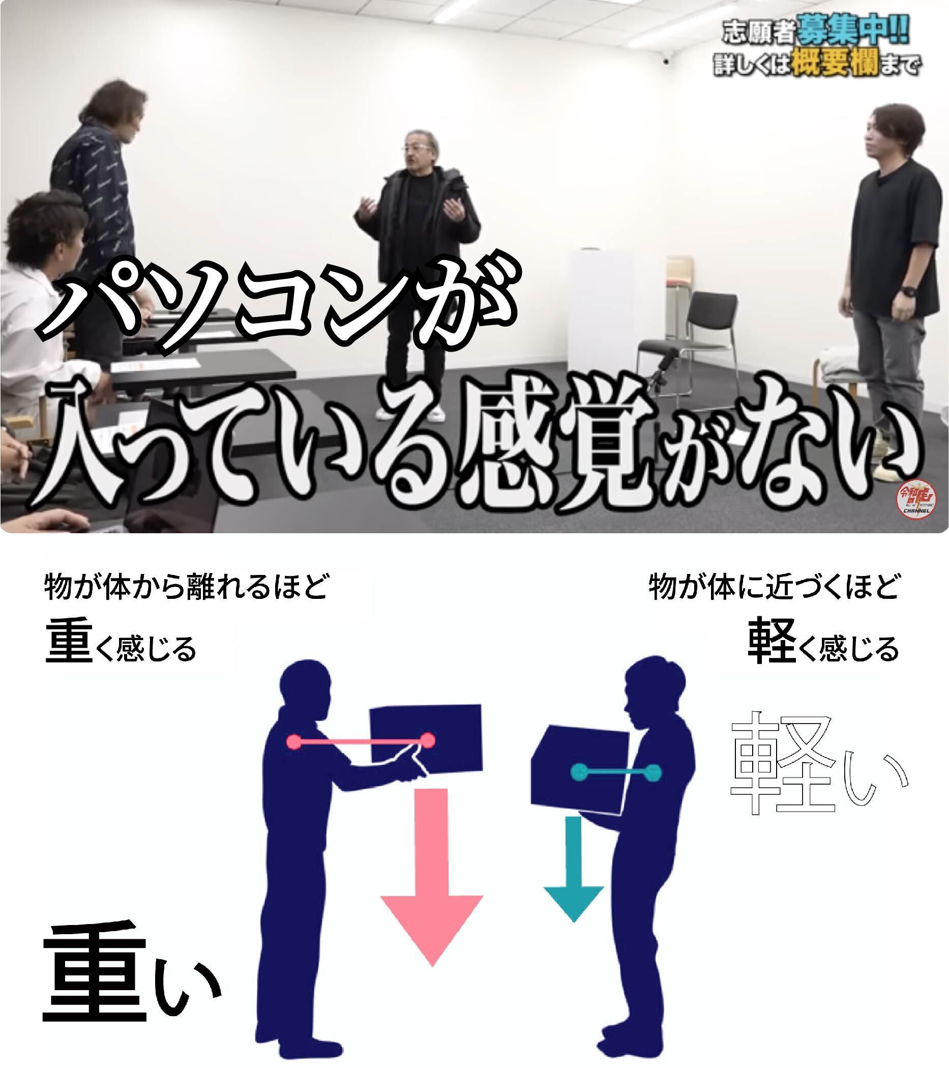この原理により、パソコンも身にまとうことで、不思議と重さをほぼ感じません。