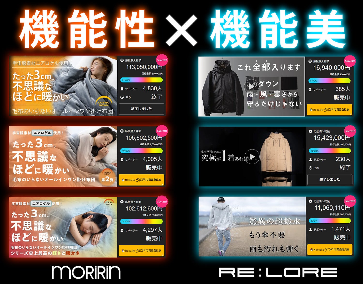 3年連続でクラファン1億円超えの「エアロゲル布団」を手がける、創業363年の繊維商社「モリリン株式会社」と、クラファン累計1.9億円超えを達成した超高機能アパレル「RE:LORE|リロア」が、2年の歳月をかけて「無敵の4WAY手ぶらアウター」を共同開発しました!
