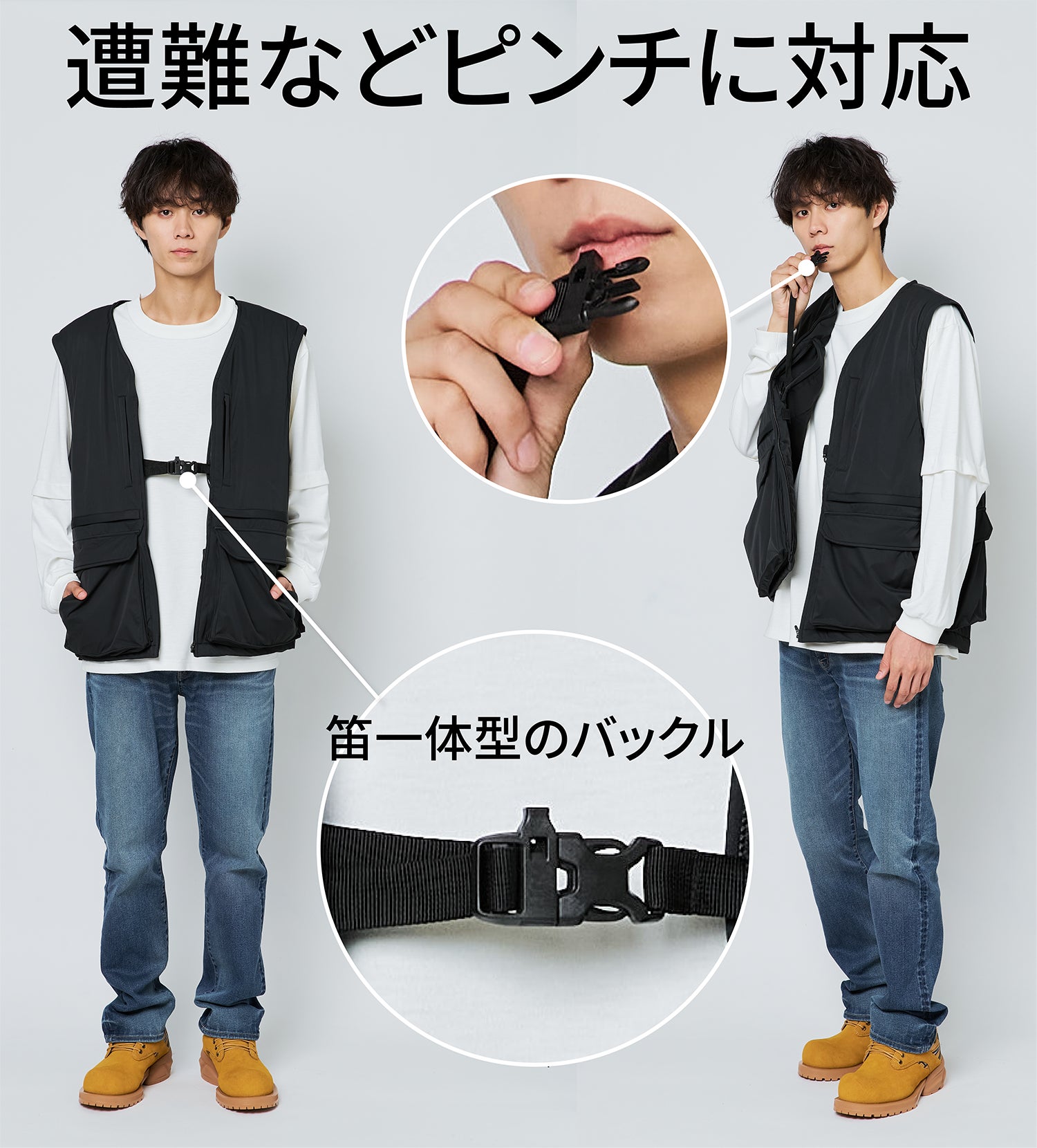 さらに、笛付きの特殊バックルを内ポケットの中に内蔵しているので、遭難などの緊急時にも役立ちます!