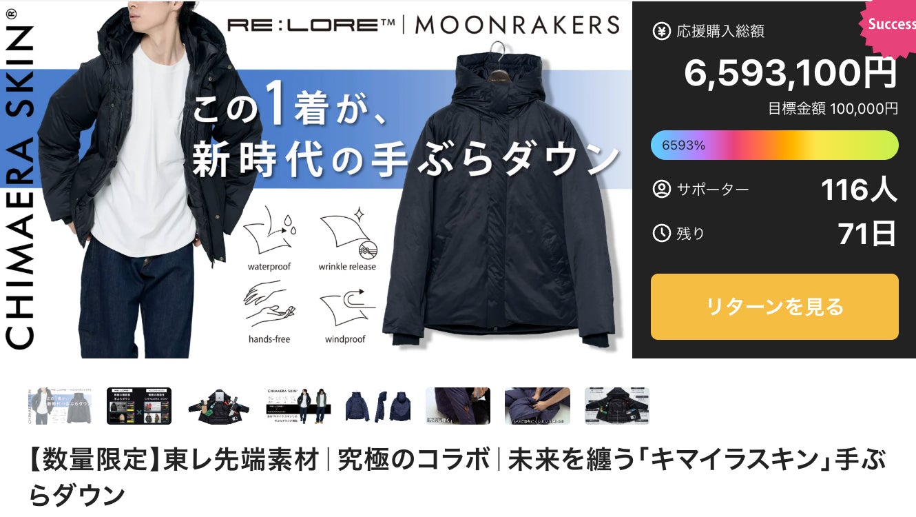 今回の『TECH 4WAY EXTREME JACKET PRO』プロジェクトは、本日23時59分をもって受付終了となります。