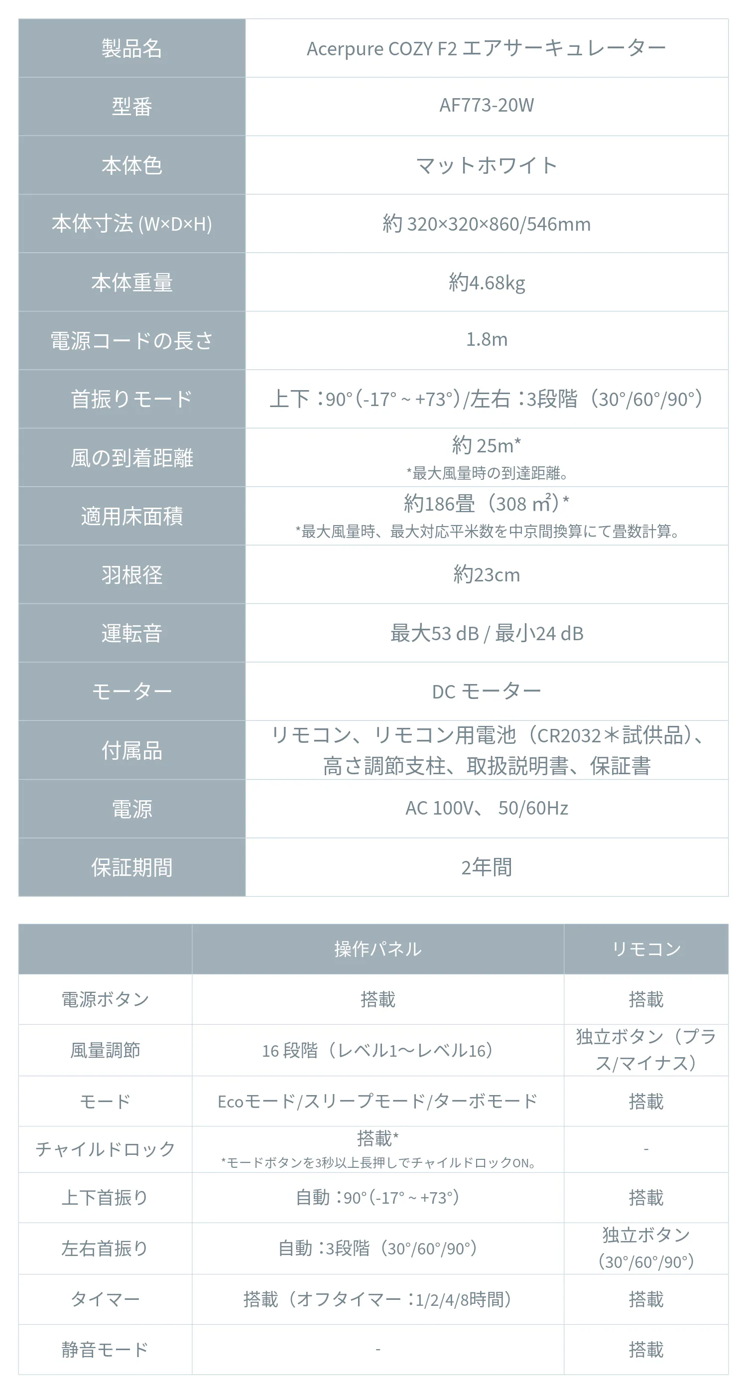 ▍2機種セット割対象のコンパクトサーキュレータ- Acerpure COZY F3