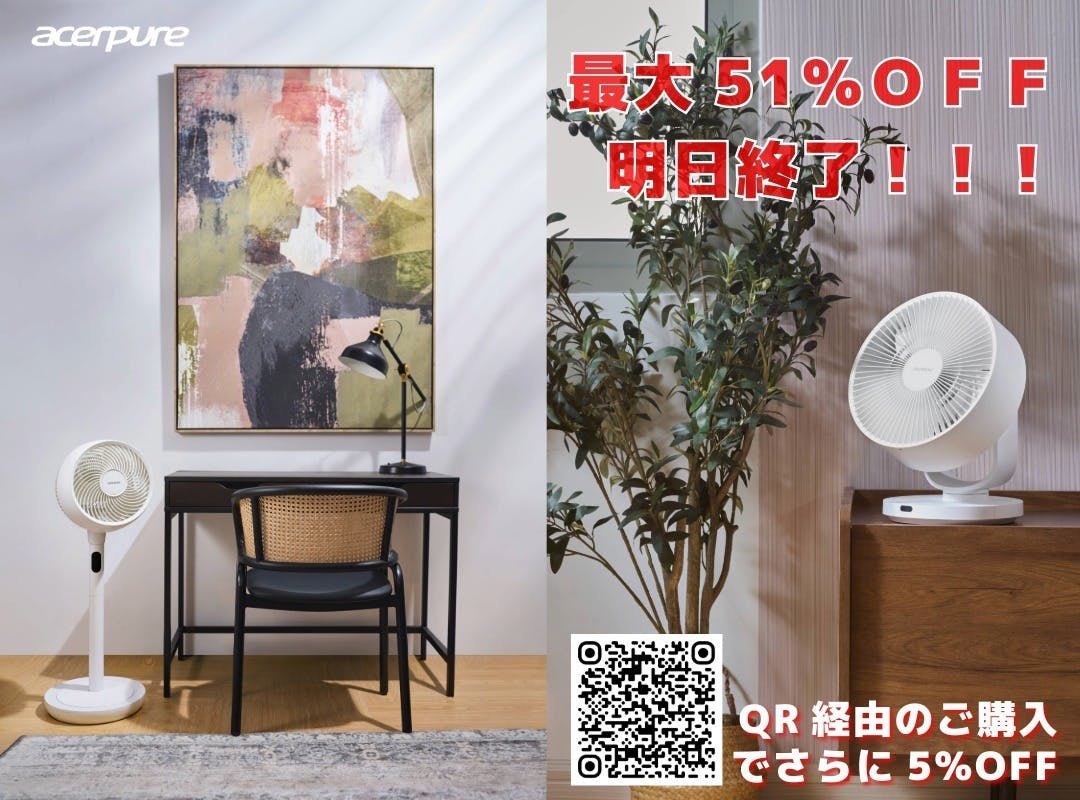 2025/09/29 18:40いよいよラスト!Acerpure COZY サーキュレーター。自然な涼しさで暑い日も快適に、省エネ設計で電気代も節約、静音で快眠もサポート。高さ調整できるF2と、コンパクトで置き場所を選ばないF3。お好みに合わせて選べます。さらに雨の日の室内物干しにも大活躍。パワフルな風で洗濯物を効率よく乾かし、生乾きのニオイやジメジメも解消。除湿機やエアコンのドライ機能と組み合わせれば、より短時間でカラッと快適に。☆クラファン限定特典☆・最大51%OFFでご支援可能・2機種セット・ダブルセットは50%OFF・画像にあるQRコードまたはこちらのURLから購入いただくと割引価格からさらに5%OFF一年中、毎日の暮らしをもっと快適にする一台。暮らしを変えるチャンスを、どうぞお見逃しなく! もっと見る