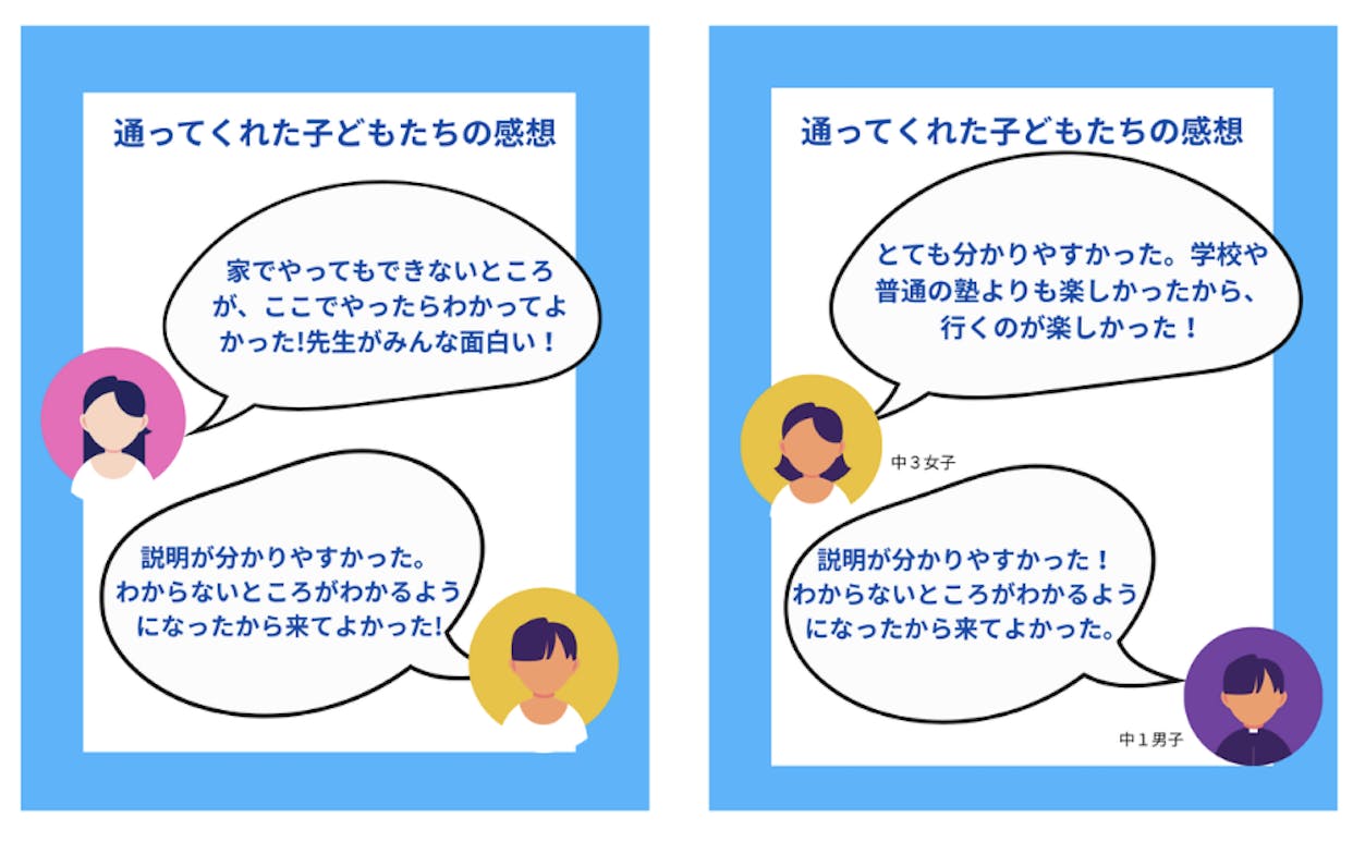 現在の状況を打破したいと思い、希望する高校、大学に進学したいと決意しても金銭的理由から塾に通いたくても通えない子どもをどうしても救いたいという一心でこの事業をスタートすることを決意しました。
