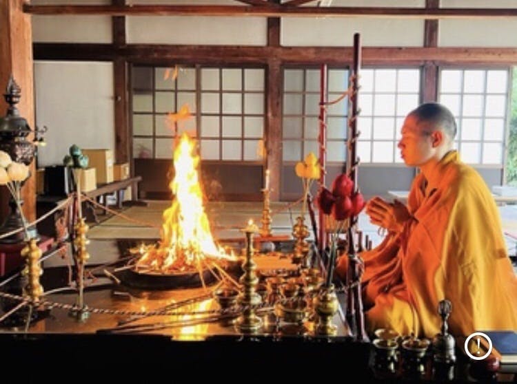 昨年は、弘法大師空海の生誕1250年。それに合わせて、上戸暖大師は、1年間で1250座の護摩行をされました。私たちが、ふだん見る護摩は短いもの。上戸師の護摩は1時間以上もかかる五段護摩です。それを1年間に1250座ですから、日に何度もされることもあった。